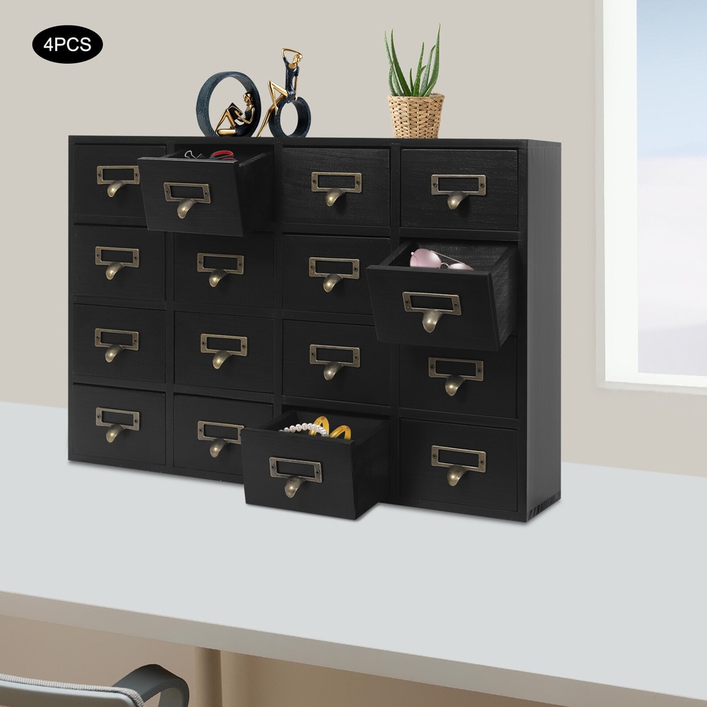 Number of Drawers: 64 Each Cabinet Load Capacity: 10kg/22.05lbs Style: Vintage Brand: Unbranded Overall Product Size: 100*10*70cm/39.37*3.94*27.56in Fe'a'tu're's: ★Stable performance and high quality★ Number of Cabinets: 4 Item Width: / Each 16-drawer Cabinet Size(L*H): 50*35cm/19.69*13.78in Type: Storage Cabinet Item Length: 19.69in Herstellergarantie: 3 Jahre Please Note: Shipment from local warehouse in the US Mounting Type: Tabletop Mount Color: Black Material: Pine Wood, Plywood, Zinc Alloy Item Height: 13.78in Assembly Required: No Process: Spray Paint, Aging