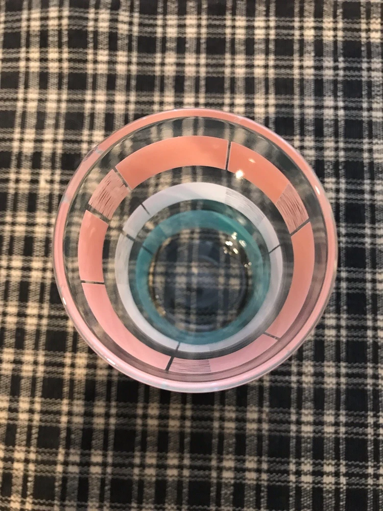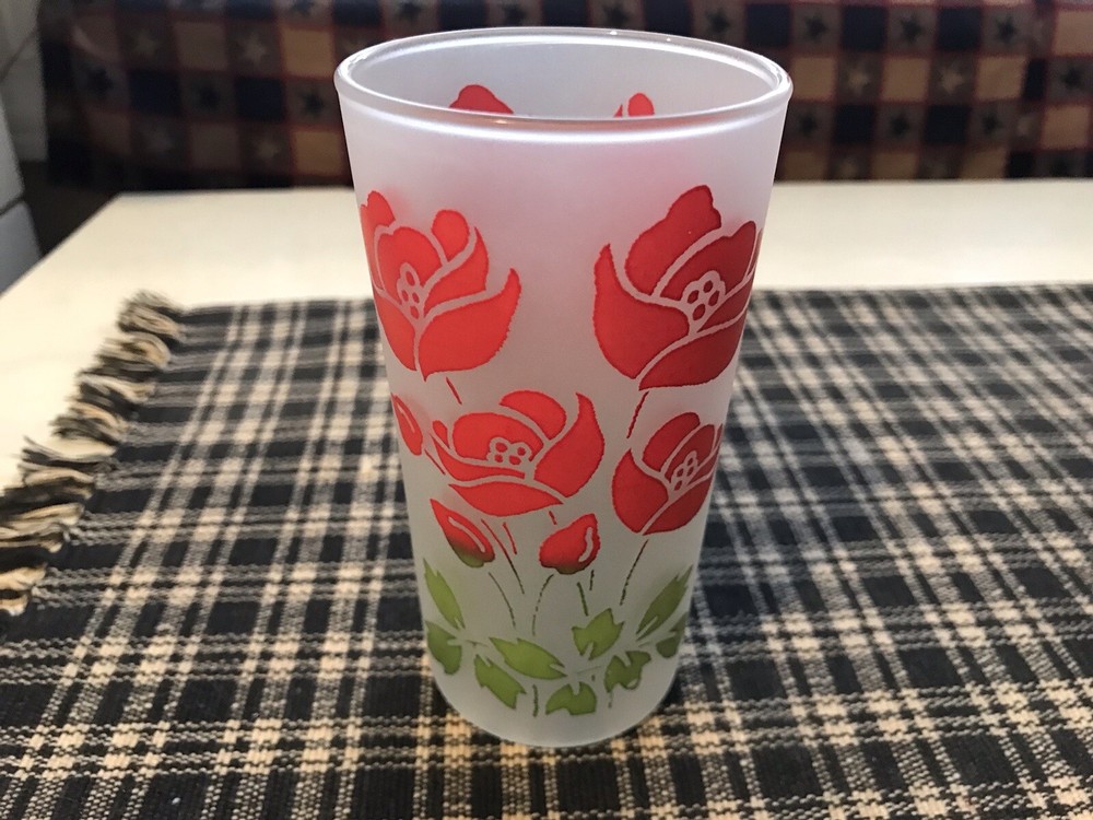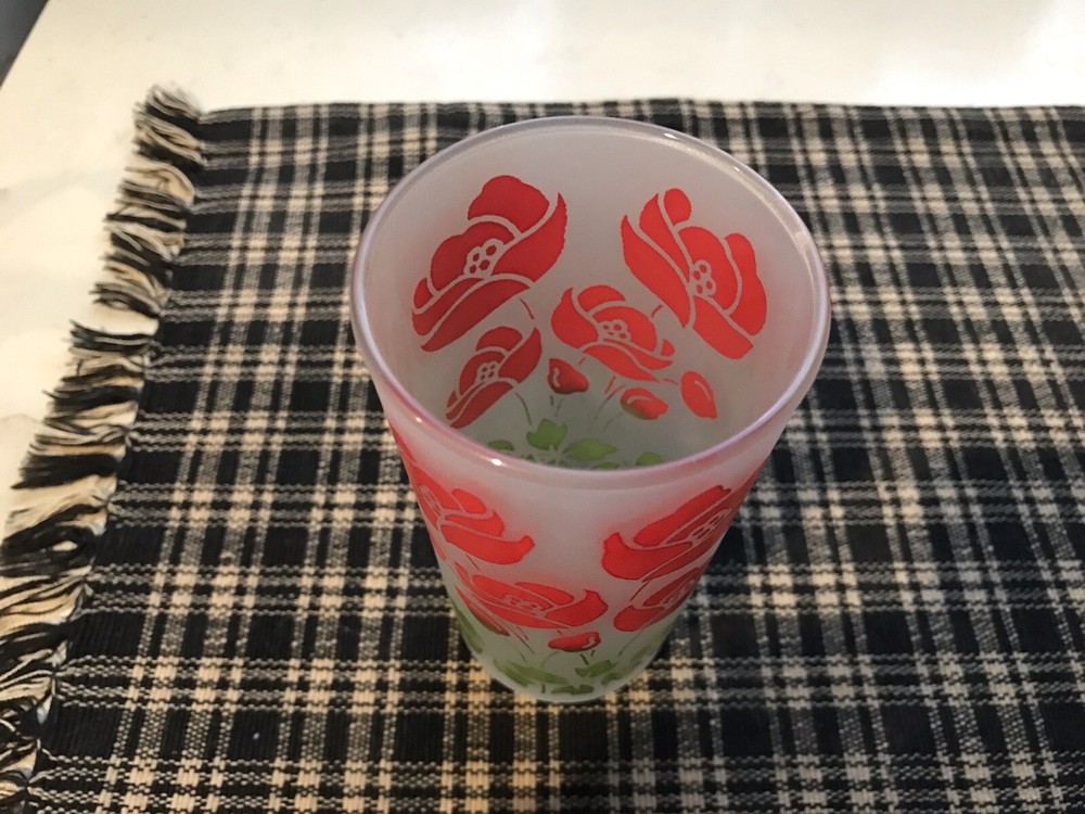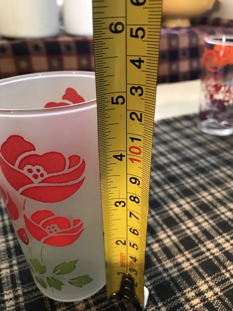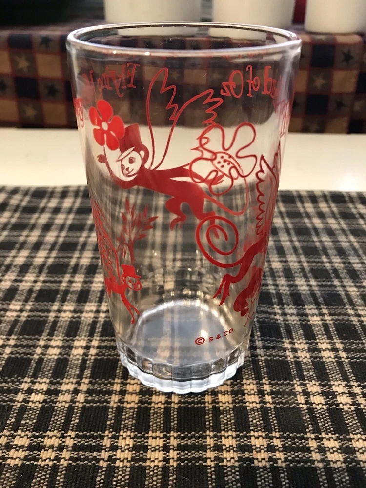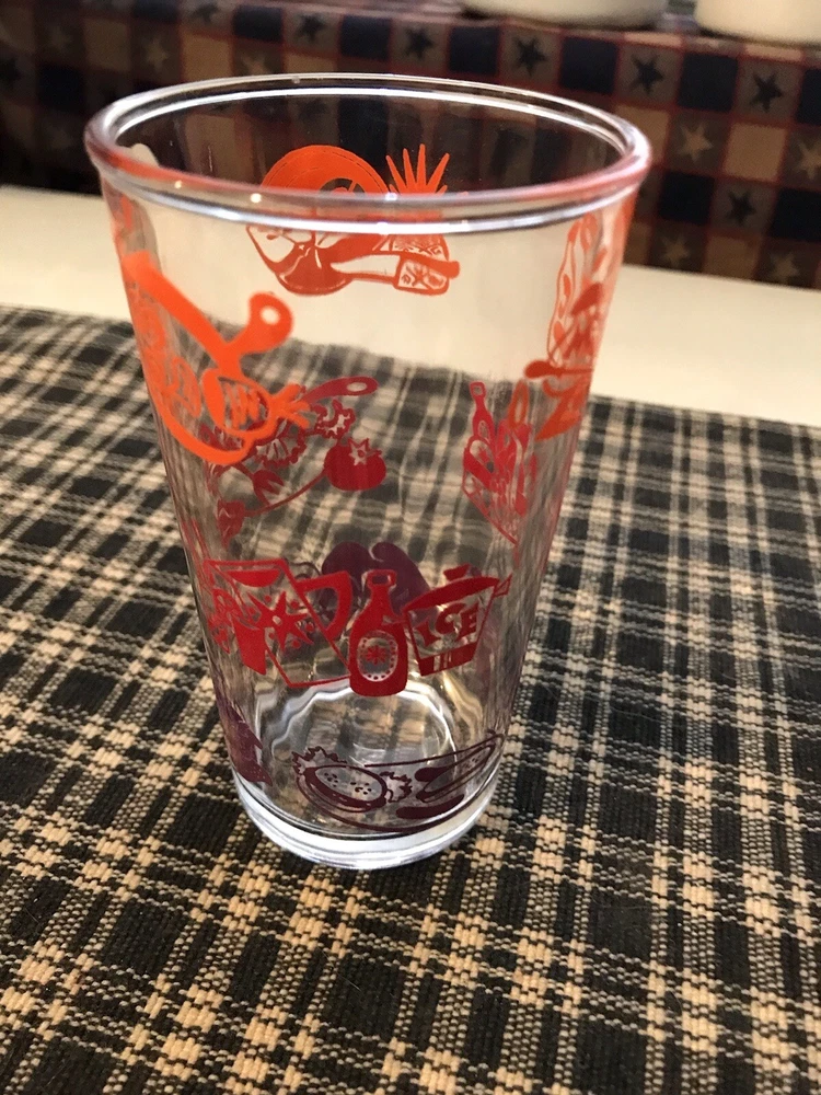 This is a mixed set of 4 vintage drinking glasses made by various brands such as Hazel Atlas, Libbey, Anchor Hocking, and Swift Company. The glasses are round in shape and have a mid-century modern style. They are multicolored and made of glass, and were manufactured in the United States during the 1950s. This set is perfect for all occasions .