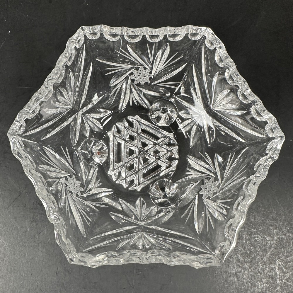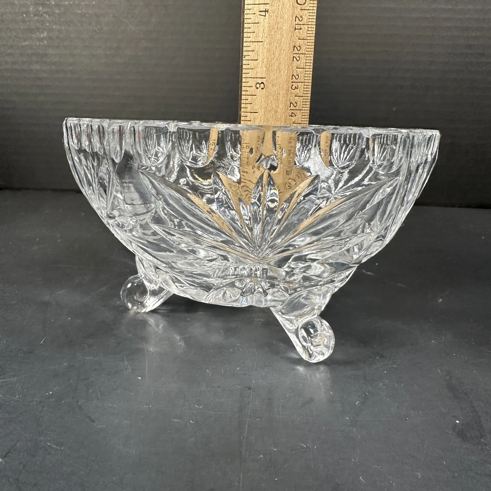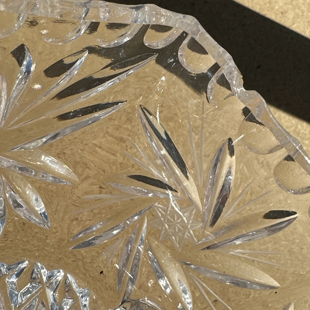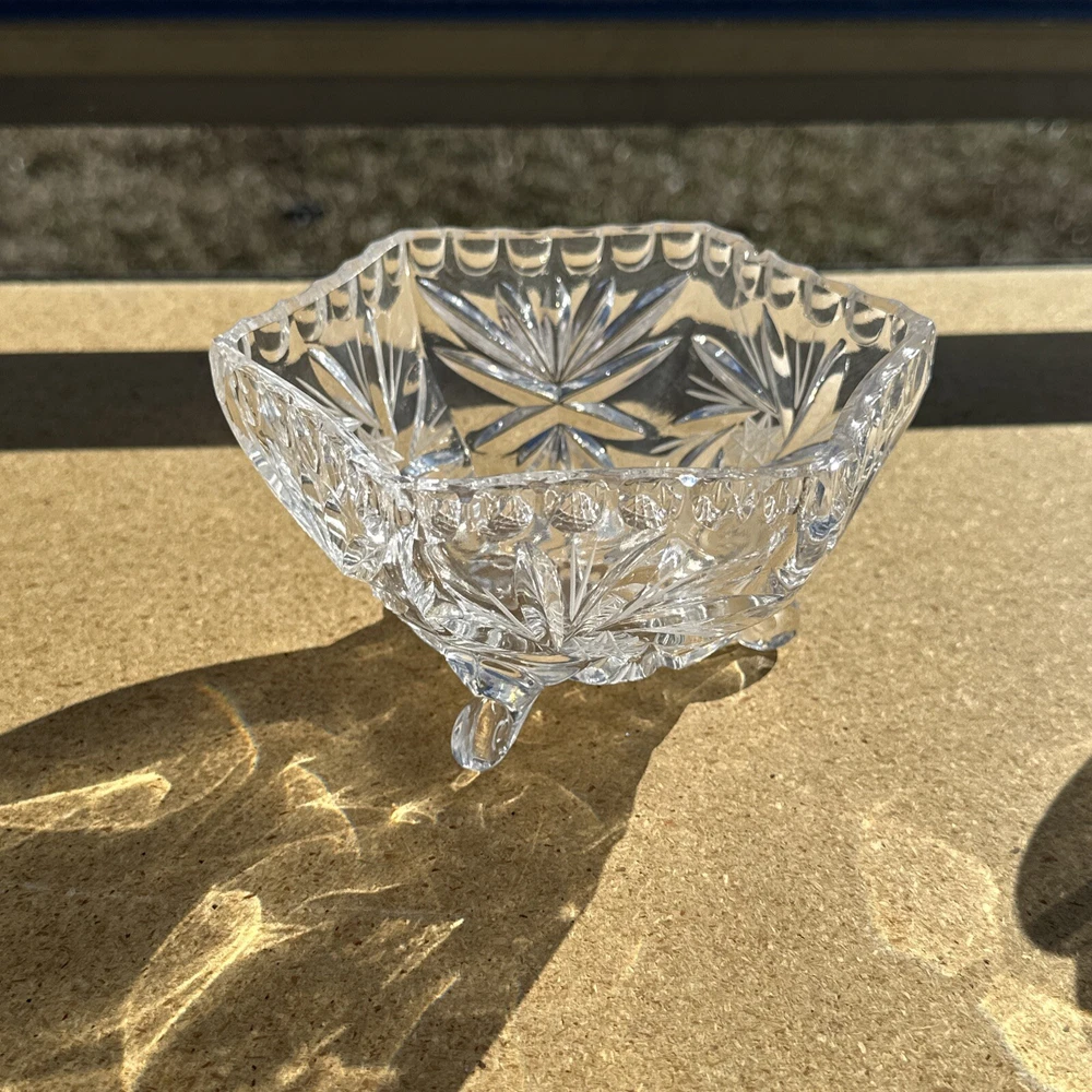 Lead Crystal Vintage Candy Dish 5 3/4" Cut Glass Lead Crystal Bowl Trinket Bowl Tiny Chip on rim. See photos