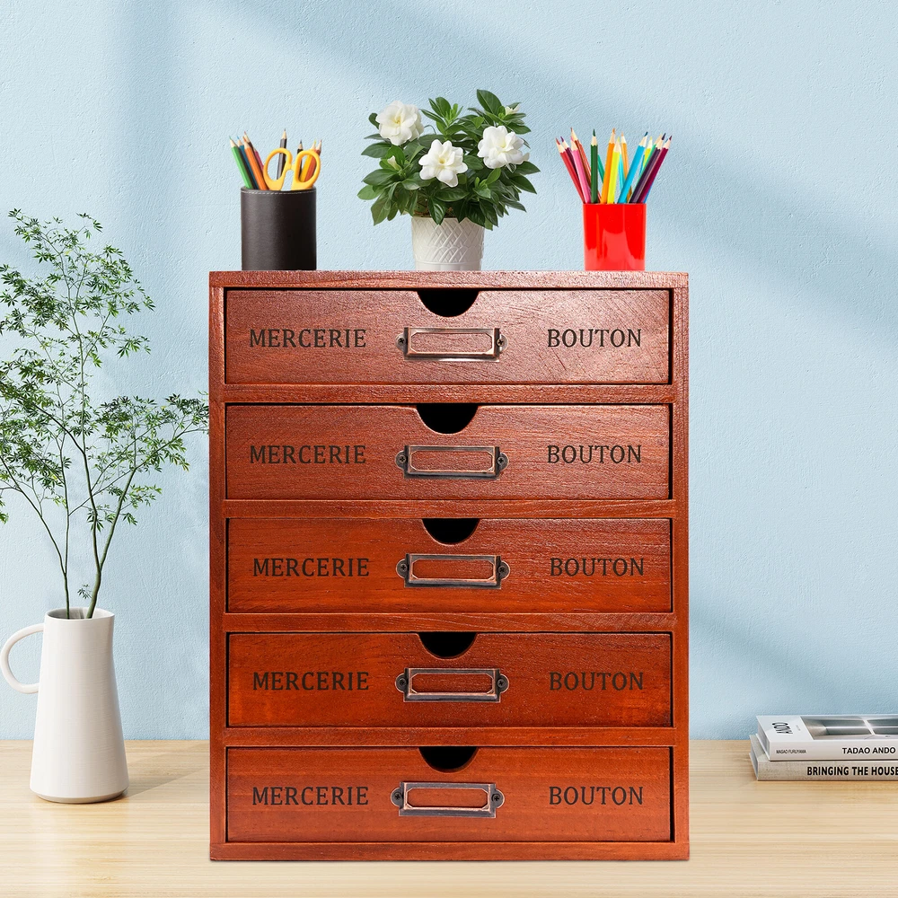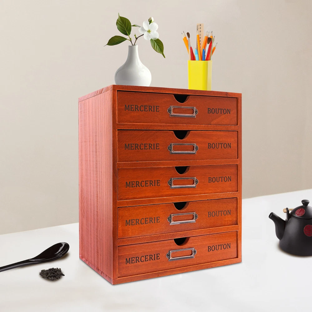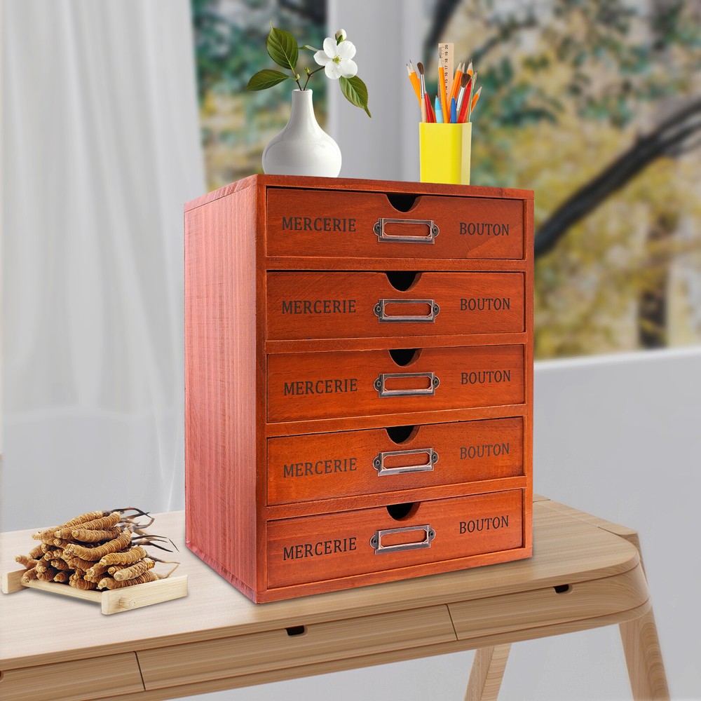 Specifications Colors: Brown Layer: 5 Layers Material: Pine Wood Surface Treatment: Spray Painting Gross Weight: 3.75kg/8.24 Lbs Net Weight: 3.5kg/7.72 Lbs Package Size: 26.5*19*32.5cm/10.43*7.48*12.8" Product Size: 25*17.5*31cm/9.84*6.89*12.2" Each Drawer Size: 23*5cm/9.06*1.97" Package Included 1* 5-Layer Drawer Storage Cabinet Vintage 5 Layers Large Jewelry Organizer Wooden Storage Box Case With 5 Drawers About this item Are Your Items Often Cluttered and Cannot Be Found? Do You Have Too Many Cosmetics and Tools Without a Large Enough Storage Box? If You Answered Yes to These Questions, You Shouldn't Miss This 5-Drawer Storage Cabinet. the 5-Drawer Storage Design Allows You to Store Many Different Types of Items. the Wood and Spray Paint Make This Item Not Only Very Durable but Also Very Good-looking. It Is Both an Organizer and a Home Decor. Specifications Colors: Brown Layer: 5 Layers Material: Pine Wood Surface Treatment: Spray Painting Gross Weight: 3.75kg/8.24 Lbs Net Weight: 3.5kg/7.72 Lbs Package Size: 26.5*19*32.5cm/10.43*7.48*12.8" Product Size: 25*17.5*31cm/9.84*6.89*12.2" Each Drawer Size: 23*5cm/9.06*1.97" Package Included 1* 5-Layer Drawer Storage Cabinet Key Highlights Smooth Push and Pull : Each Drawer of This Item Has the Right-sized Slot. This Makes It Very Smooth to Push and Pull Without Jamming, so It Is Effortless to Use and Can Bring You a Good Mood. Large Capacity: This Drawer Storage Cabinet Has 5 Drawers. You Can Sort and Place Many Things Inside. a Large Enough Space Makes Storage More Convenient. Full Pull-out Drawer: the Drawer of This Storage Cabinet Is a Full Pull-out Design, Which Can Display All the Things in the Drawer and Make It More Convenient for You to Get Them. Elegant Design: the Wood and Painted Surface Give This Item a More Textured Look. the Simple Retro Design Style Is Pervaded by the Flavor of Years of Sinking and Is Very Charming. This Unique Retro Style Can Match Well with Your Home. Environmentally-friendly and Durable: the Item Is Made of High-quality Pine Wood with an Environmentally Friendly Water Paint Surface, Which Is Not Only Harmful to Human Health but Also Very Strong and Durable. Landing Design: the Base of This Cabinet Is a Direct Landing Design, Which Prevents Dust from Entering the Bottom. This Avoids the Trouble of Cleaning the Bottom Gap Dust. It Is Very Clean and Beautiful. Space-saving: It Saves Space by Making Full Use of Vertical Space. This Storage Cabinet Can Hold Things Both Horizontally and Vertically. Easy to Access : Each of the Five Drawers Has a Handle That Makes It Easy for You to Pull the Drawer. Ideal Gift: This Drawer Storage Cabinet Has a Unique Design with a Beautiful Appearance and a Large Capacity with Practical Highlights. It Is an Ideal Gift for Valentine's Day, Mother's Day, Thanksgiving, Christmas and Weddings. Nice Surface Treatment: the Surface of This Storage Cabinet Is Painted, Which Not Only Makes It Look More Glossy but Also Can Play a Pest and Moisture-proof Effect. This Will Give It Longer Service Life. Details Placeable Top: the Top of This Item Is Flat and Can Hold Things, Which Is Not Only Easy to Access but Also Very Space-saving. Built-in Drawer Handles : the Handles of These Drawers Are a Built-in Semi-circle. You Can Easily Pull It Open and Do Not Worry About the Handle Loosing. This Is Both Beautiful and Practical. Clear Texture: This Cabinet Is Made of High-quality Pine Wood, Which Makes the Texture of the Surface of the Item so Original, Clear, and Beautiful, Making It Have Vintage and Elegant Highlights. Application This Item Can Be Used in Bedrooms, Living Rooms, Studies, Powder Rooms, Beauty Stores, Etc. for Neatly Storing Art Supplies, Office Supplies, School Supplies, Jewelry and Other Desktop Accessories. Notes Please Allow the Slight Color Difference Caused by the Shooting Light and 1-3cm Error Due to Manual Measurement, and Make Sure You Do Not Mind Before You Order. Payment Delivery details Terms of sales About us Contact us Payment We accept ebay payment 。 Fees such as import duties, taxes are not included in the item price or shipping costs. These charges are the buyer's responsibility. Delivery details Shipping: 2-9 working days to: USA Terms of sales We maintain high standards of excellence and strive for hundred percent customer satisfaction. Feedback is very important to us. We hope that you contact us immediately before you give neutral or negative feedback, so that we can address your concerns. It is impossible to address issues if we do not know about them! About us Your satis faction is our ultimate goal. We work hard to earn your trust and future business. Our certified technicians have tested each item before shipping. The unit comes with 1 year limited warranty on all manufacturing defects. a) If you receive a defective item, you may return it or ask for a discount. Please contact us within 14 days after you receive the package. b) What you returned must be intact and in its original packaging as re? u. Customer is responsible for shipping costs of the returned item. c) We will cover the cost of shipping back t with the shipping rate indicated in the registration page. We will send you a new unit or refund the full payment you paid. Thank you. Contact us Business Hour Business Hour: Monday To Friday: 8:30 AM to 5:00 PM (Beijing China time) Due to time zones, our reply to your questions may not be immediately. But within above working time, we will reply your email within 24 hours. If it's non-workdays, please kindly be patient and wait till Monday. Please contact us with ebay message. Please feel free to contact us if you have any questions. Monday To Friday: 8:30 AM to 5:00 PM (Beijing China time) Due to time zones, our reply to your questions may not be immediately. But within above working time, we will reply your email within 24 hours. If it's non-workdays, please kindly be patient and wait till Monday. Please contact us with ebay message. Please feel fre