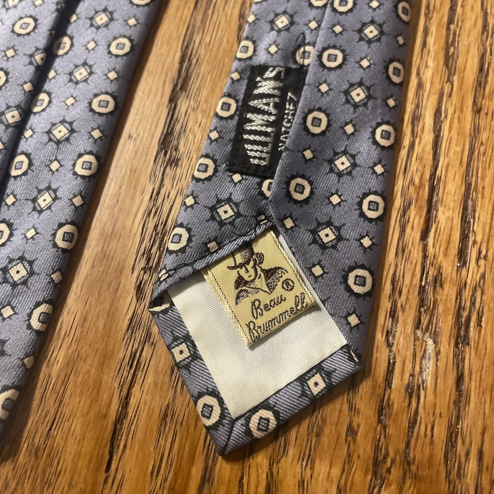 The Vintage 50s Beau Brummell Silk Skinny Tie is a stylish and unique accessory for men. Featuring a colorful Foulard pattern with a retro Swing and Rockabilly theme, this tie is made of luxurious silk satin and is crafted in the United States. The skinny width adds a modern touch to the classic design, making it a statement piece for any vintage-loving gentleman's wardrobe.