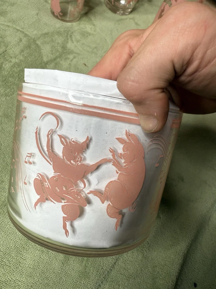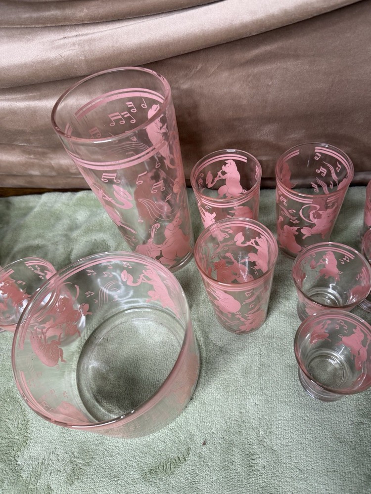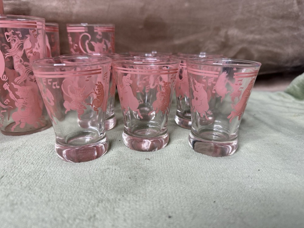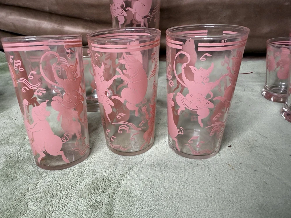17 pieces, however 2 cracked shown in pictures and tall shaker glass has a small chip on bottom. Don’t be afraid to make an offer.