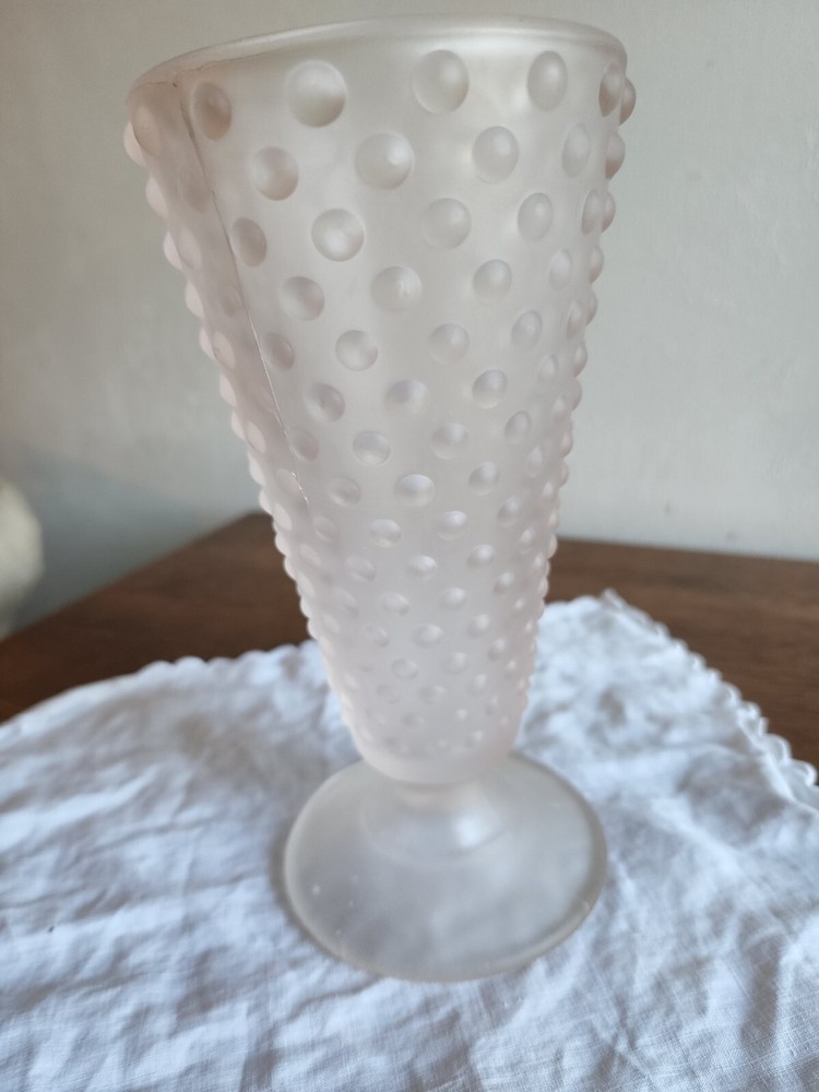 Vintage Frosted Pink Satin Hobnail 50's Fenton Pedestal Teleflora 8" Vase. In great pre-owned condition. No chips or cracks.