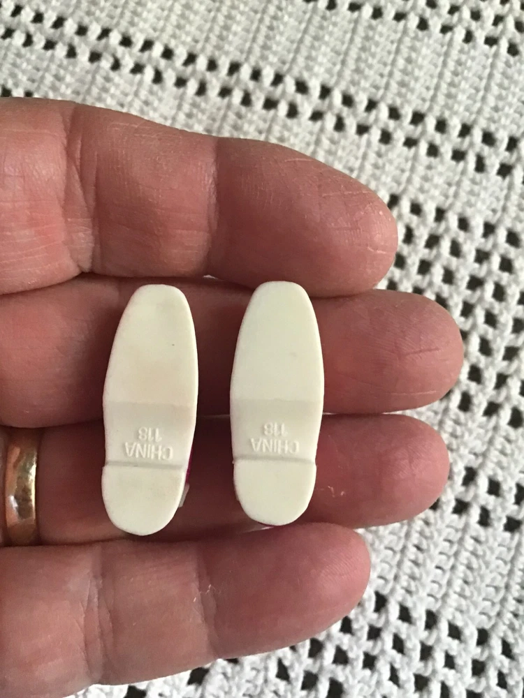 I did not try these on a modern Barbie foot only a 90's vinyl foot. My mail lad y picks up from my home once a day around noon, so if you pay before noon then the item will go out same day and if you pay after noon then it will go out next day. Except holidays and Sunday of course Please read about combined shipping before sending a message. I will combine shipping just ask for a invoice on the checkout page with a computer only not a hand held device. If you do not have a computer I will provide a refund of any shipping overcharges. Once you ask for a invoice please do not pay if you are also bidding since I have a 24 hour shipping policy and can not hold items. I purchased this item from a auction in Ohio. I am smoke and pet free. Thank you so much for taking your time to look at my items and have a good day. No international sales not even to USA shipping centers. Location crate My mail lad y picks up from my home once a day around noon, so if you pay before noon then the item will go out same day and if you pay after noon then it will go out next day. Except holidays and Sunday of course Please read about combined shipping before sending a message. I will combine shipping just ask for a invoice on the checkout page with a computer only not a hand held device. If you do not have a computer I will provide a refund of any shipping overcharges. Once you ask for a invoice please do not pay if you are also bidding since I have a 24 hour shipping policy and can not hold items. I purchased this item from a auction in Ohio. I am smoke and pet free. Thank you so much for taking your time to look at my items and have a good day. No international sales not even to USA shipping centers. Location crate My mail lad y picks up from my home once a day around noon, so if you pay before noon then the item will go out same day and if you pay after noon then it will go out next day. Except holidays and Sunday of course Please read about combined shipping before sending a message. I will combine shipping just ask for a invoice on the checkout page with a computer only not a hand held device. If you do not have a computer I will provide a refund of any shipping overcharges. Once you ask for a invoice please do not pay if you are also bidding since I have a 24 hour shipping policy and can not hold items. I purchased this item from a auction in Ohio. I am smoke and pet free. Thank you so much for taking your time to look at my items and have a good day. No international sales not even to USA shipping centers. Location crate My mail lad y picks up from my home once a day around noon, so if you pay before noon then the item will go out same day and if you pay after noon then it will go out next day. Except holidays and Sunday of course Please read about combined shipping before sending a message. I will combine shipping just ask for a invoice on the checkout page with a computer only not a hand held device. If you do not have a computer I will provide a refund of any shipping overcharges. Once you ask for a invoice please do not pay if you are also bidding since I have a 24 hour shipping policy and can not hold items. I purchased this item from a auction in Ohio. I am smoke and pet free. Thank you so much for taking your time to look at my items and have a good day. No international sales not even to USA shipping centers. Location My mail lad y picks up from my home once a day around noon, so if you pay before noon then the item will go out same day and if you pay after noon then it will go out next day. Except holidays and Sunday of course Please read about combined shipping before sending a message. I will combine shipping just ask for a invoice on the checkout page with a computer only not a hand held device. If you do not have a computer I will provide a refund of any shipping overcharges. Once you ask for a invoice please do not pay if you are also bidding since I have a 24 hour shipping policy and can not hold items. I purchased this item from a auction in Ohio. I am smoke and pet free. Thank you so much for taking your time to look at my items and have a good day. No international sales not even to USA shipping centers. Location 50 crate