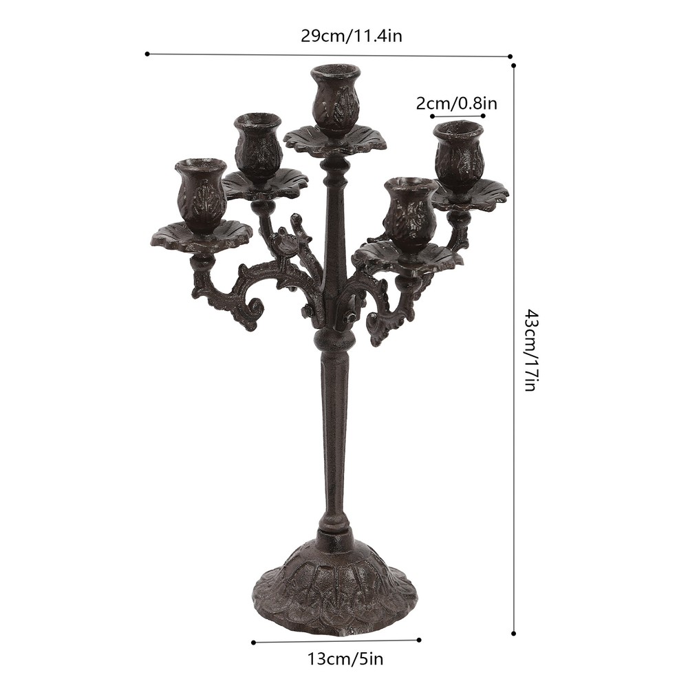Vintage 5-Arm Candle Holder Retro Iron Candelabra for Wedding Party Home Decor