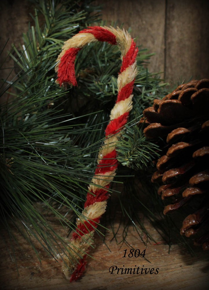 ~ Welcome to 1804 Primitives ~ 12 Very aged Chenille Candy Canes (with an accent sparkle) Approximately 6" long These candy canes are for those who love darker primitive aging The wire inside each candy cane makes them easy to bend Once bent, they hold their shape very well Hang them on your tree ~ use them as package ties ~ set them in an old trencher ~ Thank you for shopping in our little corner of eBay ~