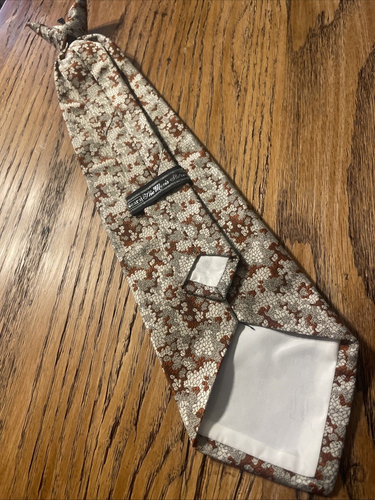 The vintage 60s 70s Sears polyester clip-on wide tie is a retro accessory perfect for adding a touch of Mod or Disco flair to any outfit. Made of multicolor geometric woven polyester fabric, this tie features a wide width and a clip-on attachment type for easy styling. With a brand like Sears and a country of manufacture in the United States, this tie offers a nostalgic and unique addition to any man's accessories collection.