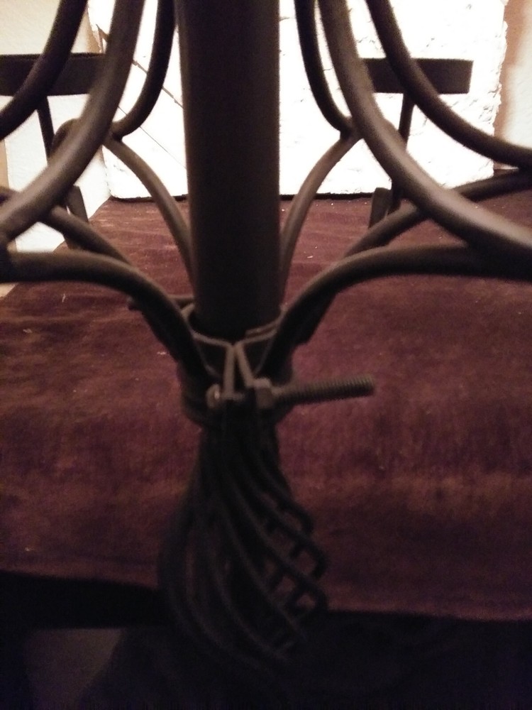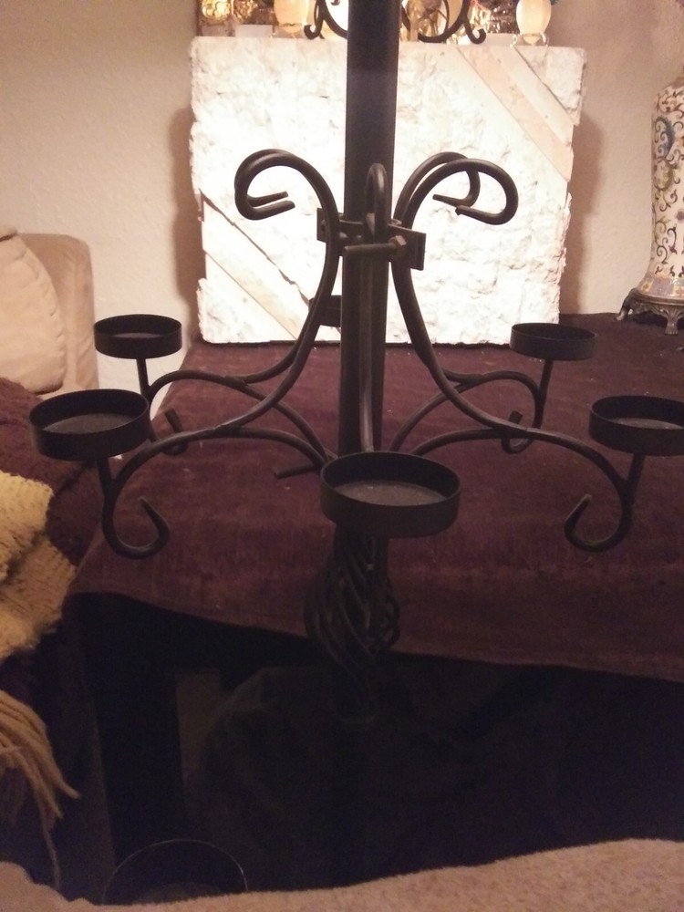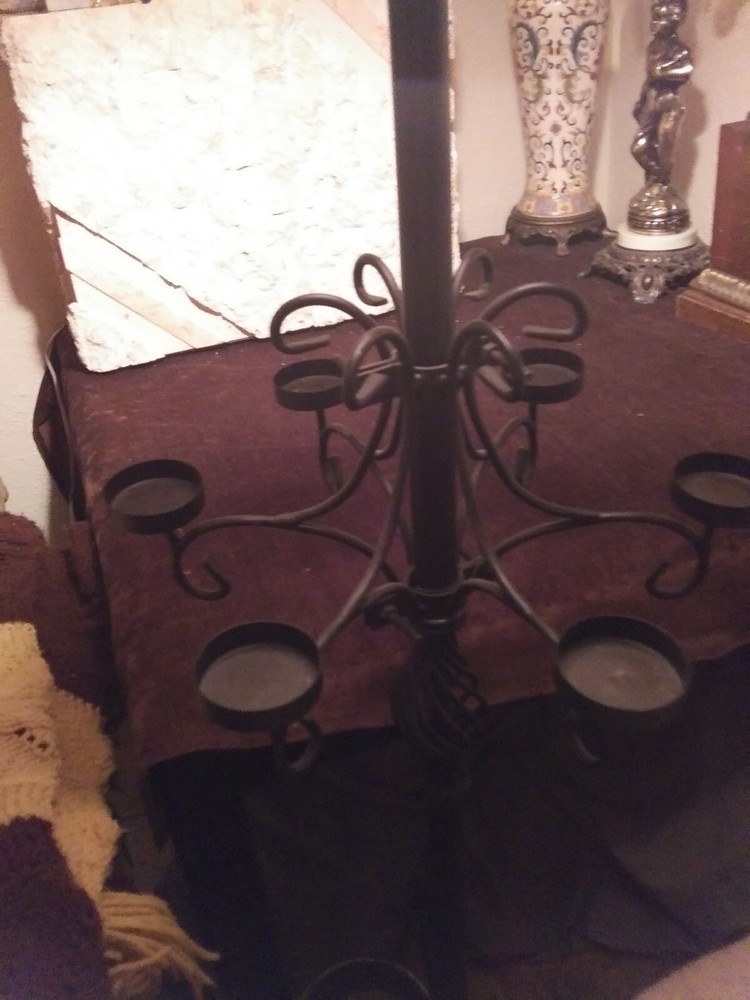 Unique vintage candle holder. It attaches to any pole or a floor lamp for example. Holds 6 votive glass candles. Beautiful when all lit. Perfect for outdoors. Questions welcome. Thank you for looking.