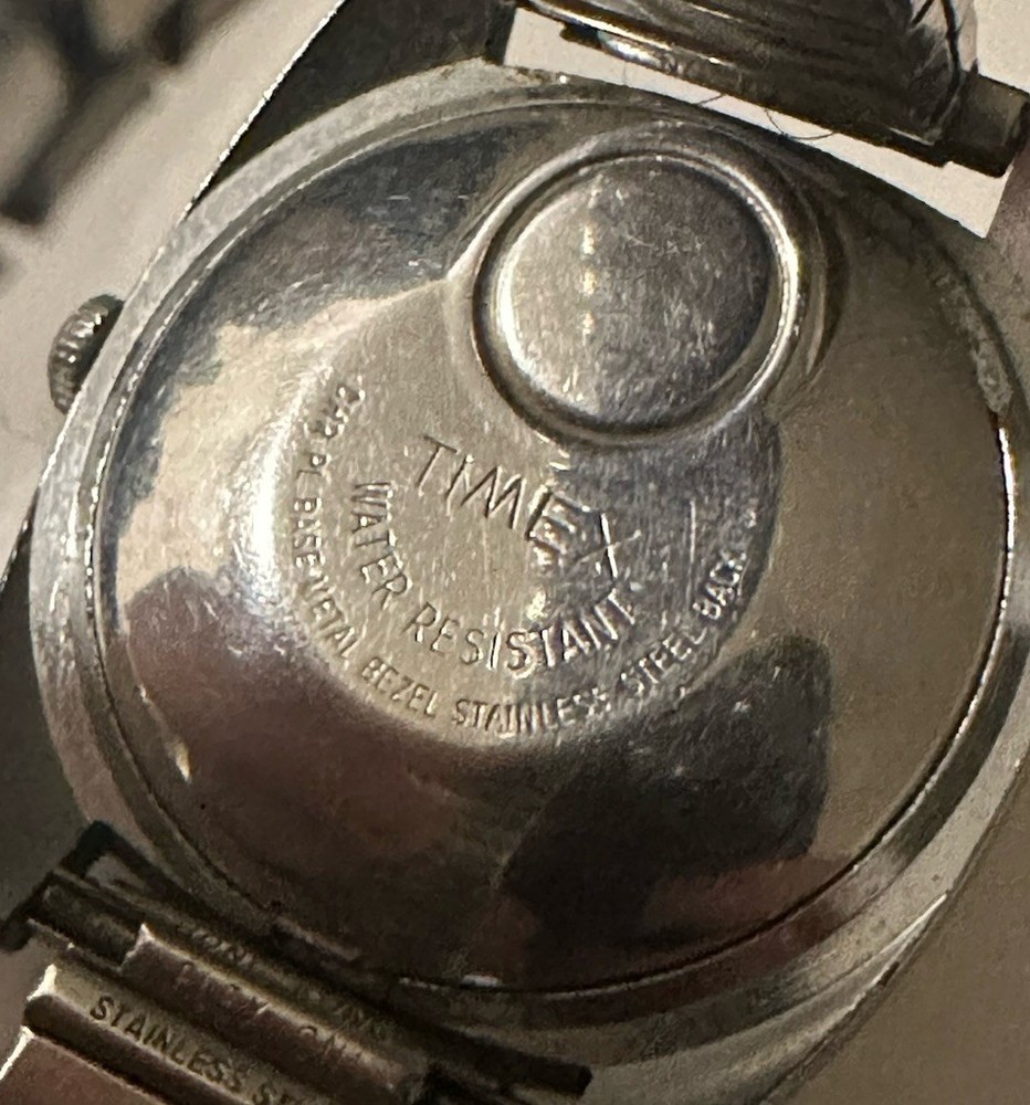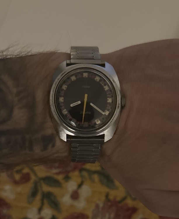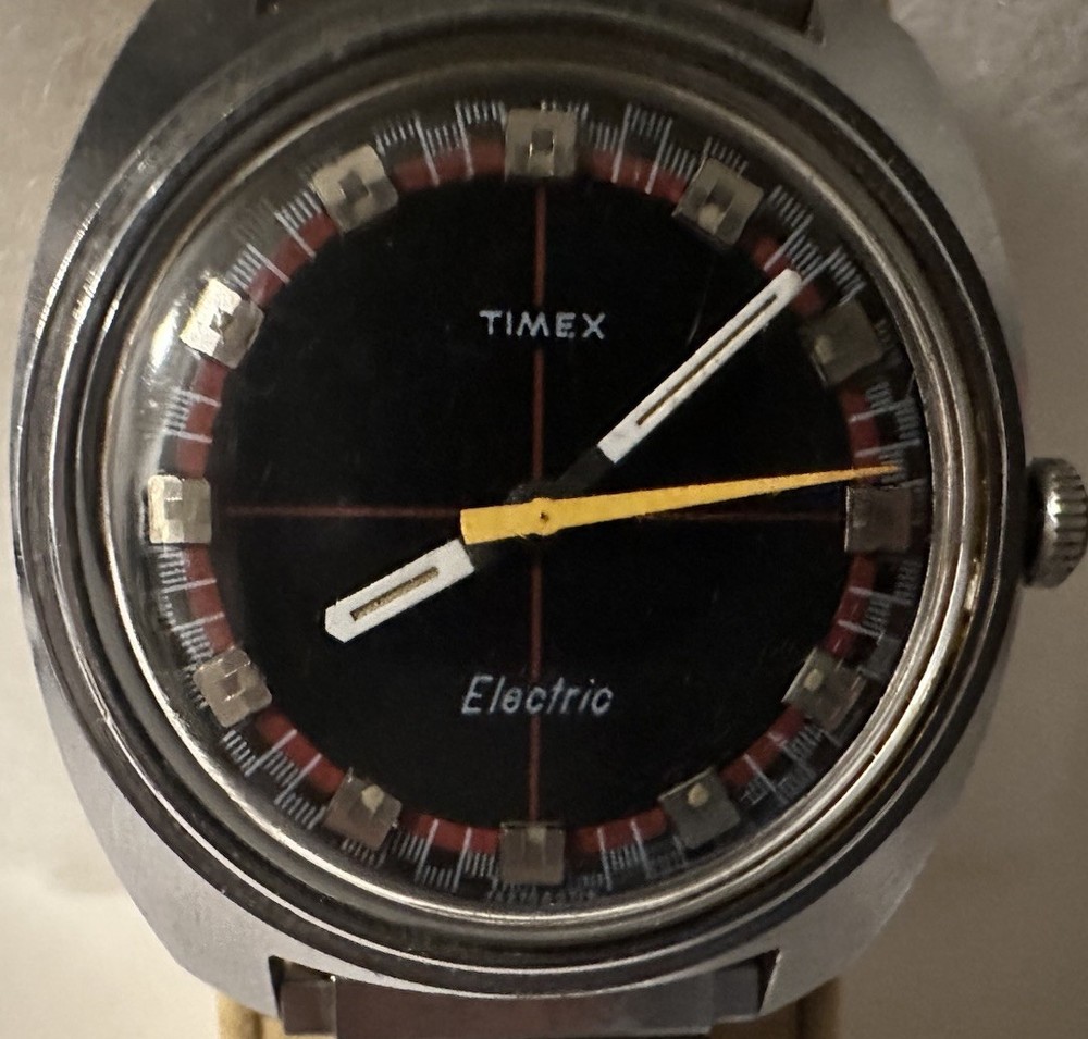 The Vintage 70s Timex Electric Black Racing Dial SS Bracelet Watch is a classic timepiece with a quartz movement and a stainless steel bracelet. With a round case size of 38mm and a black dial, this watch features a 12-hour dial and is water-resistant. Inspired by racing themes, this casual yet stylish watch from the 1970s is a timeless piece with a touch of vintage charm. Perfect for any watch enthusiast looking for a unique and functional timepiece with a touch of retro flair. This Vintage Timex watch is in Very Good working condition and keeps time well. Very nice watch with some minimal surface scratches to the crystal and some scratching to the back of the case. Very cool hard to find watch. See all photos for details. Sold as is.