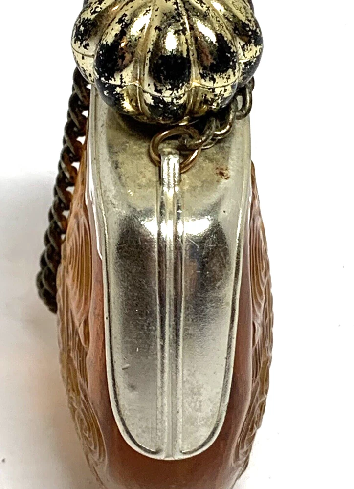 Vtg 70s MCM Avon Perfume Bird of Paradise Cologne Approximately 3/4 full, see photo. Comes with the screw on lid and a chain handle for the purse. It is an Owl Purse design.