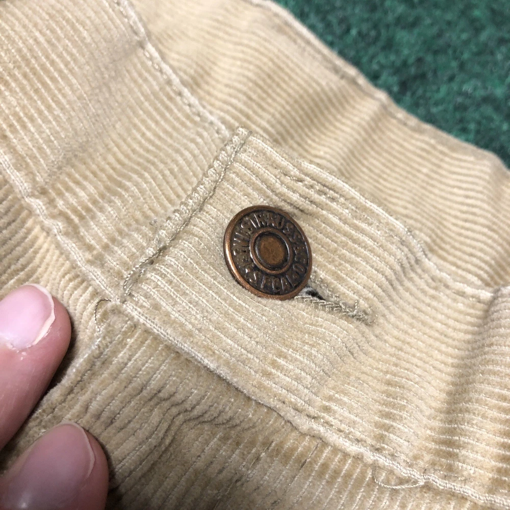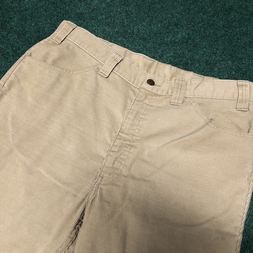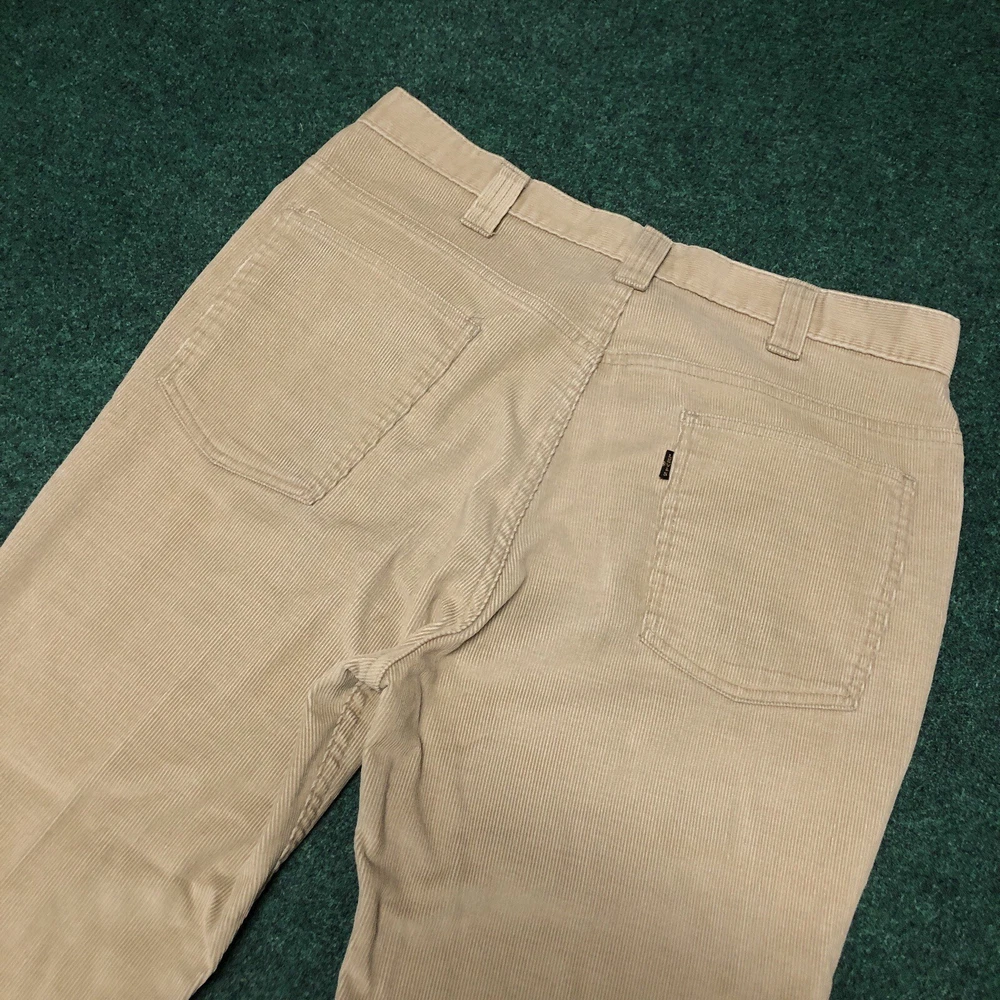 Vintage 70s Levi’s Corduroy Pants Size 36x26 Tan Bell Bottom Flare Big E Hippie Preowned Good condition Legs look like the were hemmed. Small light stain on leg near bottom. No major flaws. No Size tag that I could find, so make sure you actually look through all the measurements in the pics. Please see pics and ask questions before purchasing Thanks!