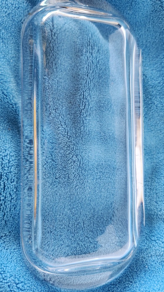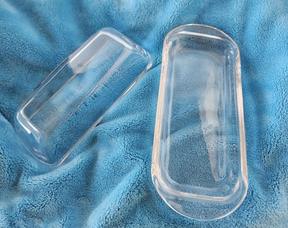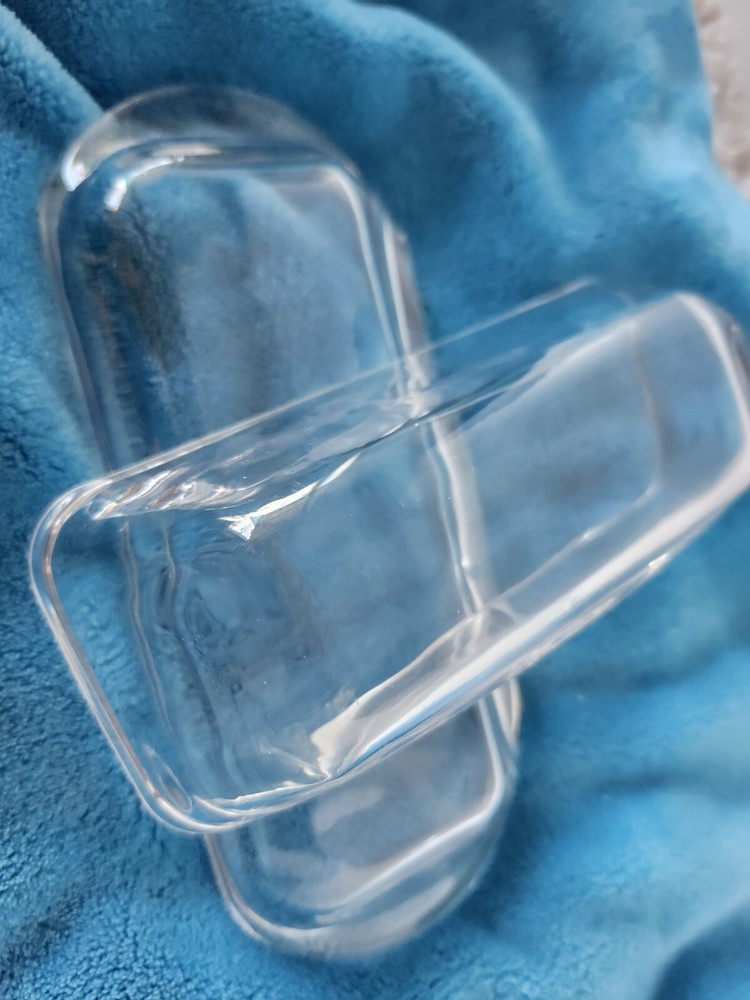 This vintage clear glass kitchen butter dish is a must-have for any collector of mid-century modern décor. The dish is made of pressed glass and features a glossy finish.