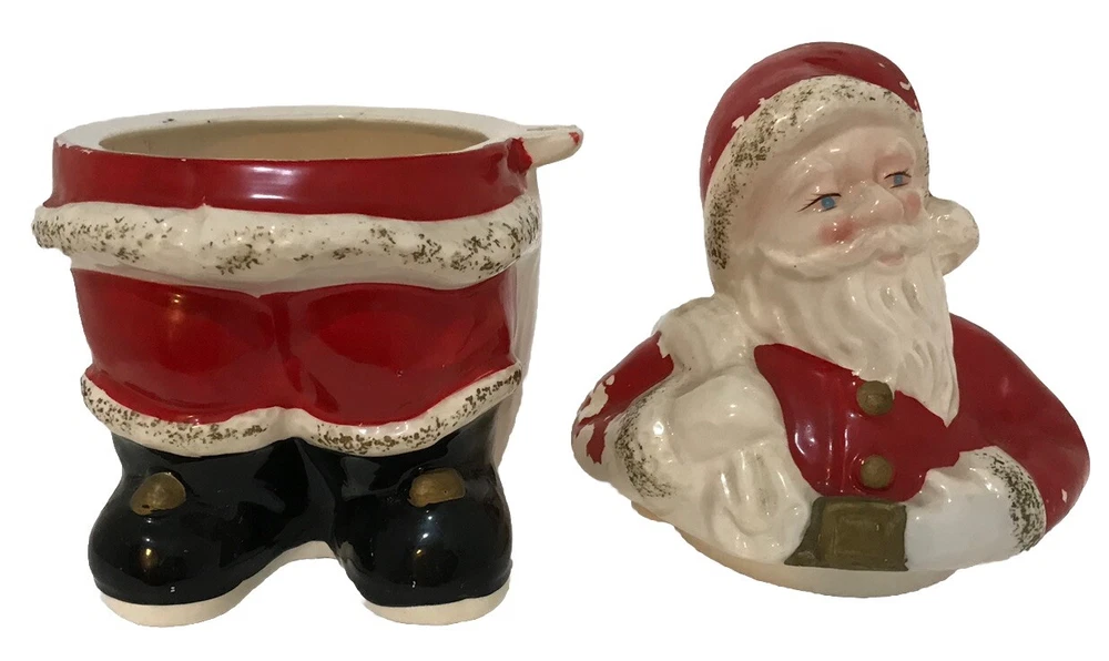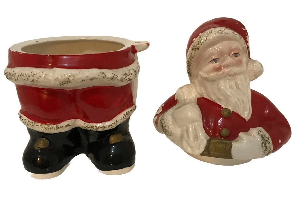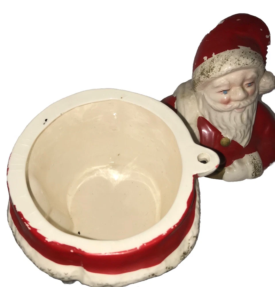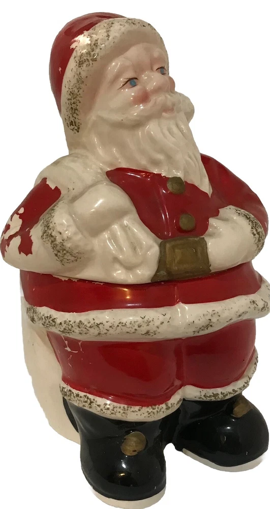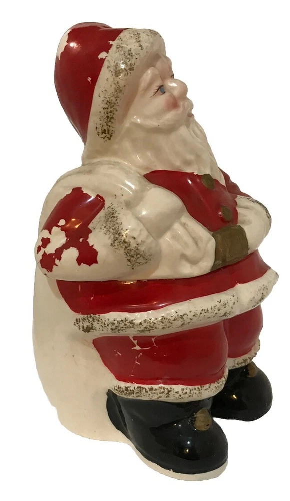 This vintage porcelain Santa bank from the 1920s is a must-have for any collector. Made in Japan, this figurine features a glossy finish and a 3D effect, making it a unique addition to your Christmas decor. The hand-painted multicolor design is perfect for any season and occasion, making it a great novelty item for teens, adults, or kids. This is perfect for anyone looking for a seasonal or novelty item. With a subject of Santa and a department of teens, adults, and kids, this figurine is sure to bring joy to any collector. Don't miss out on this one-of-a-kind piece from the past. 8” tall