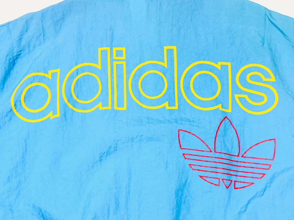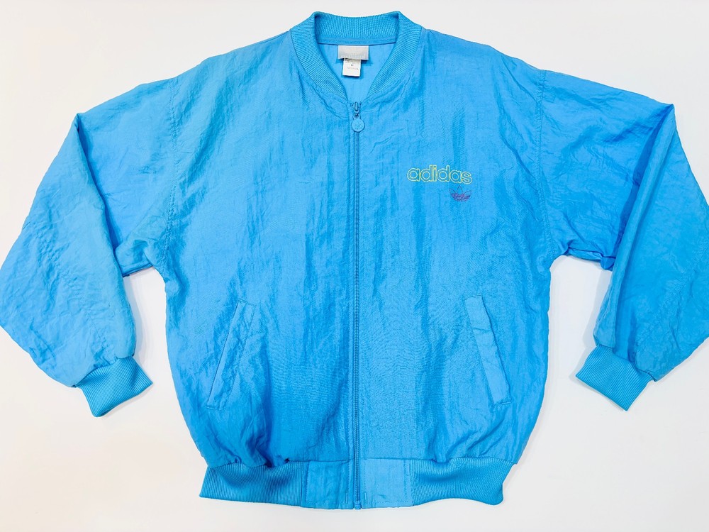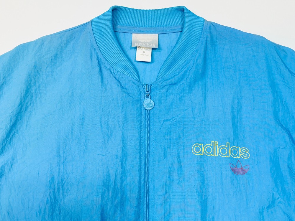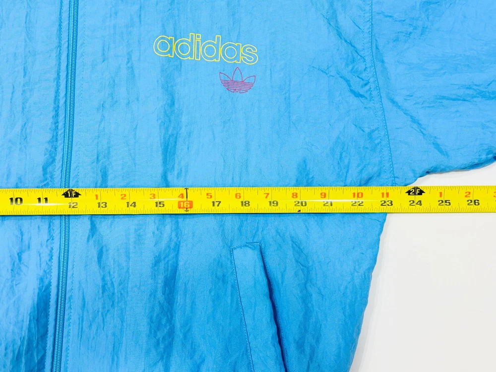 Step back into retro style with this rare vintage Adidas windbreaker jacket in bold electric blue. Features include: Size: Medium (measures approx. 23" pit to pit) Material: 100% Nylon – Lightweight & crinkly Color: Vibrant blue with yellow “adidas” text and red Trefoil logo on front and back Ribbed cuffs, collar, and hem for classic bomber styling Zip-up front with Adidas Trefoil logo on zipper pull Made in the Philippines (true vintage) This piece is in excellent vintage condition and perfect for collectors or streetwear enthusiasts. A great example of 80s/90s Adidas Originals. Don’t miss out! Ships fast and secure. Feel free to ask any questions!