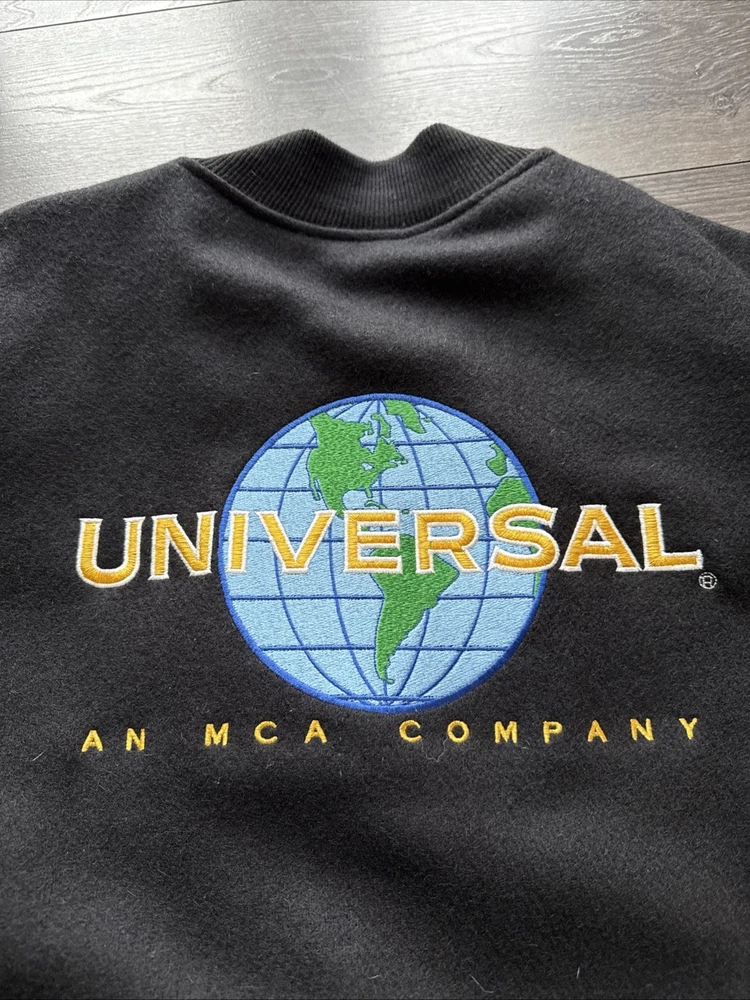 Vintage 80s 90s MCA Universal Studios Wool Leather Bomber Jacket Size L