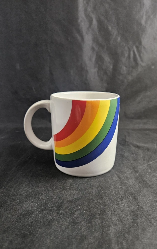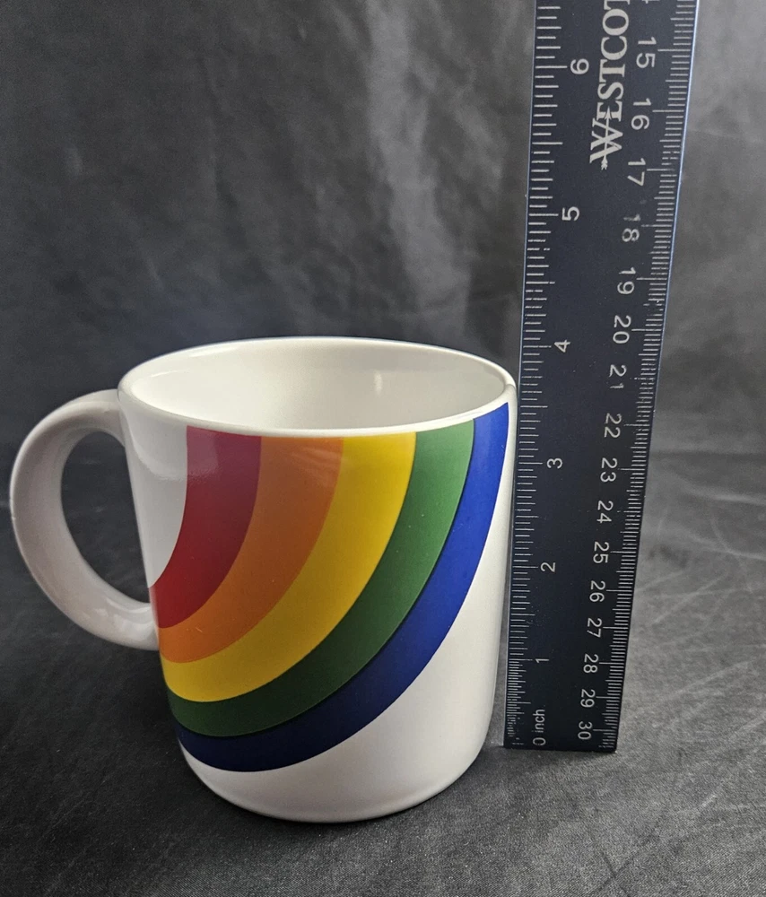 Vintage 80s Ceramic Rainbow 1984 FTDA, Made In Korea, Coffee Mug Tea Cup Very nice pre-owned mug in excellent condition. There are four available. Please see pictures for details.