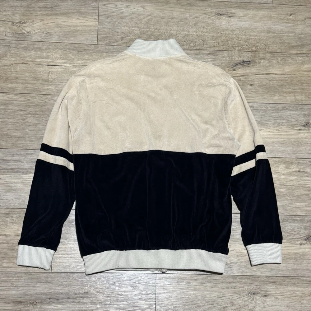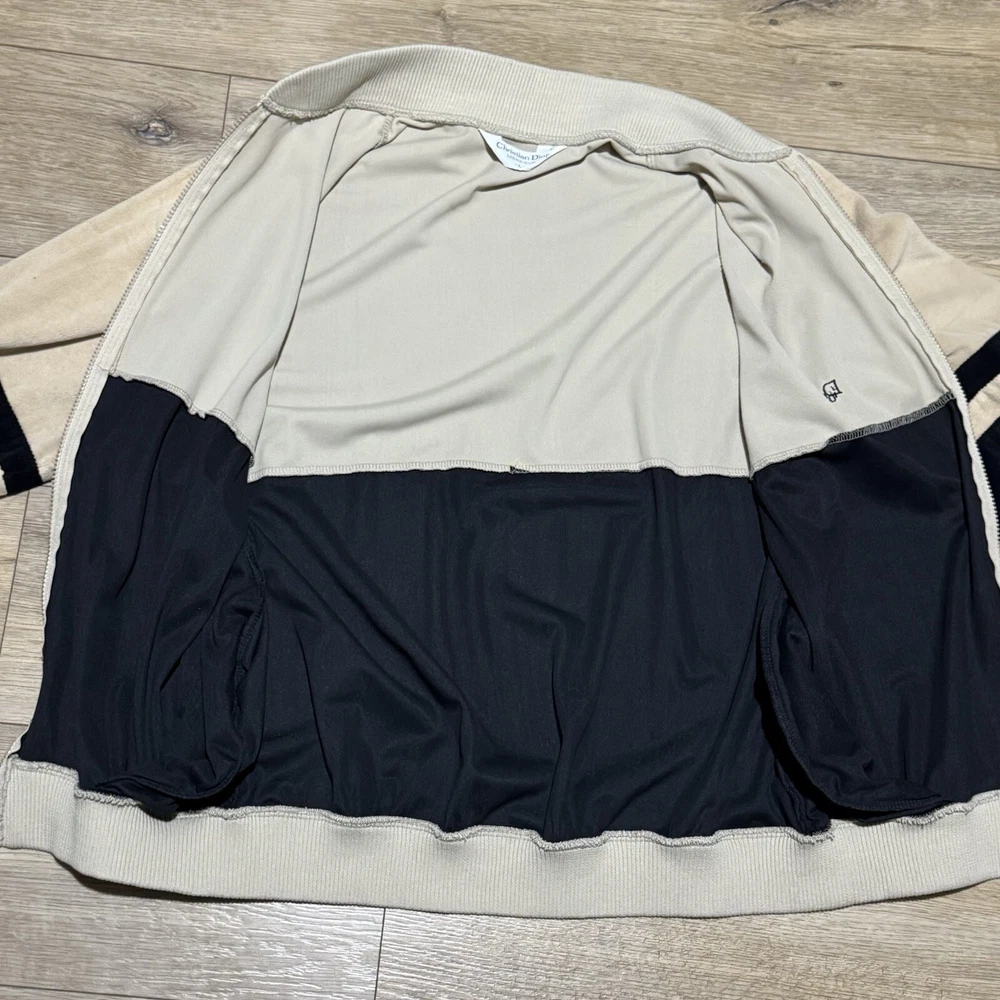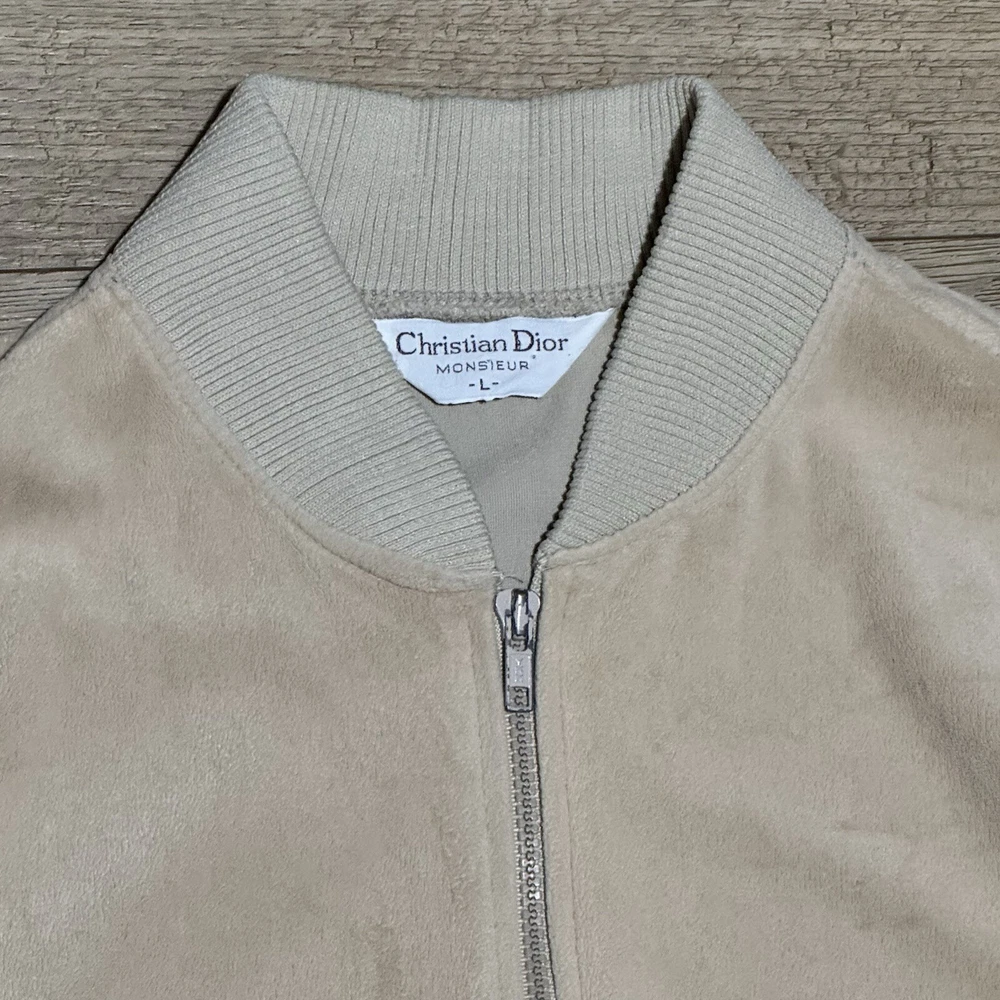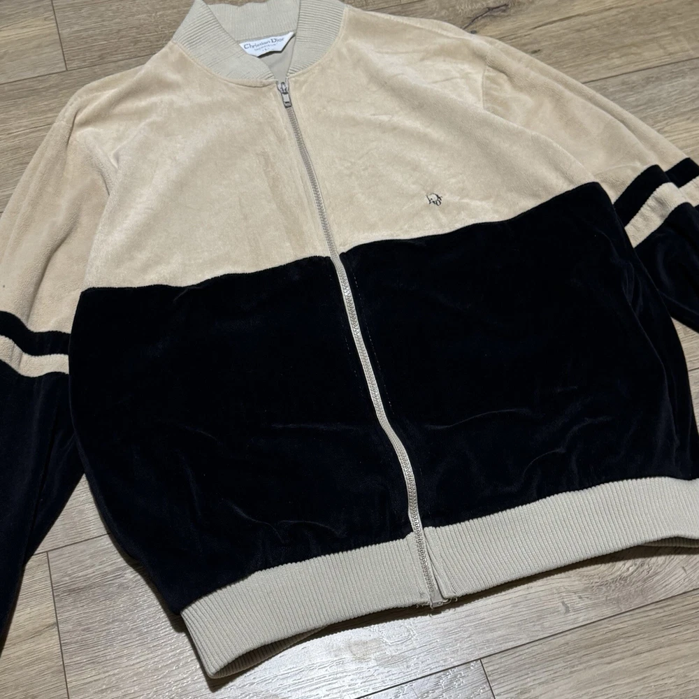 Esta es una chaqueta deportiva Christian Dior Monsieur vintage de los 80 en talla L, con un patrón único de rayas de 2 tonos en material de terciopelo beige y negro. La chaqueta tiene mangas largas, un cierre de cremallera y se acentúa con logotipos bordados y cremalleras. Esta pieza de diseño rara y lujosa es perfecta para ropa deportiva durante todas las estaciones, con un ajuste clásico y un guiño a las tendencias de moda de los años 80 y 90. Excelente estado! Algunos signos menores de desgaste. Ver última imagen por solo defecto. Recién lavado y limpiado listo para usar!