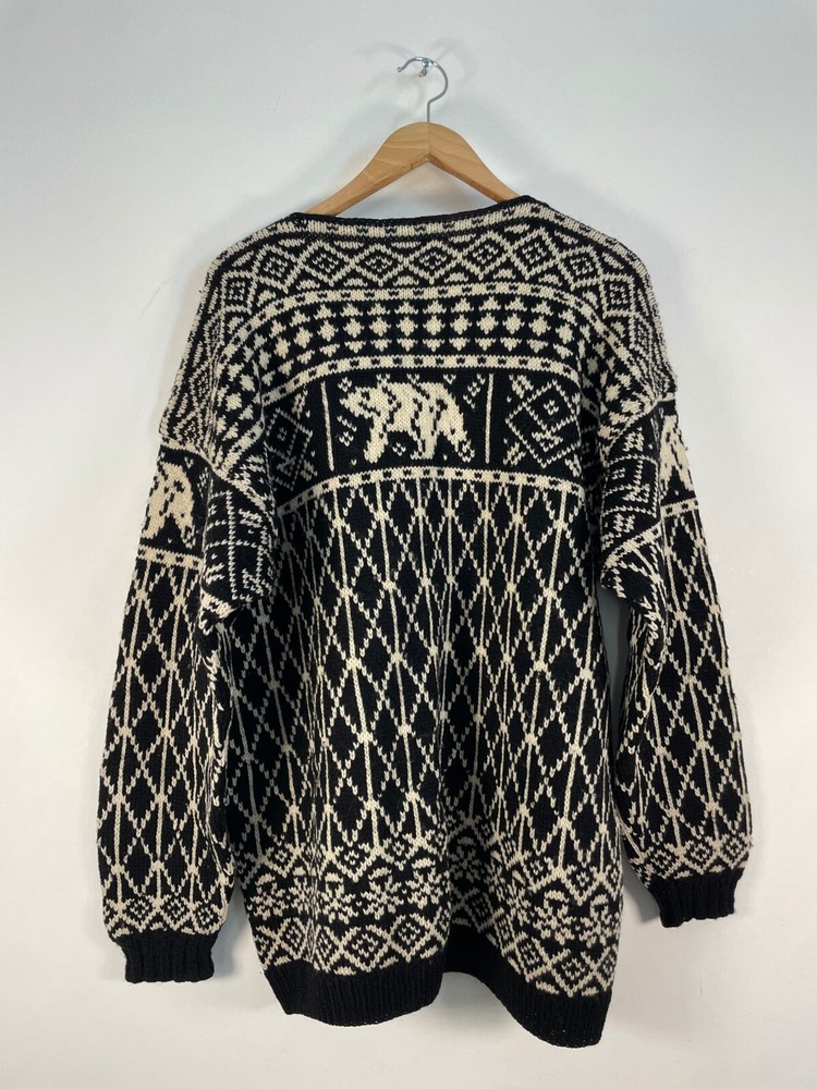 The Vintage 80's Dale Of Norway Wool Sweatshirt in size XL is a stylish and classic piece of men's clothing. Made from high-quality wool, this black pullover sweater features the iconic Dale of Norway brand and is perfect for those who appreciate retro 80s style. The XL size ensures a comfortable and generous fit, making it a versatile addition to any wardrobe for those looking to add a touch of vintage flair to their outfit.