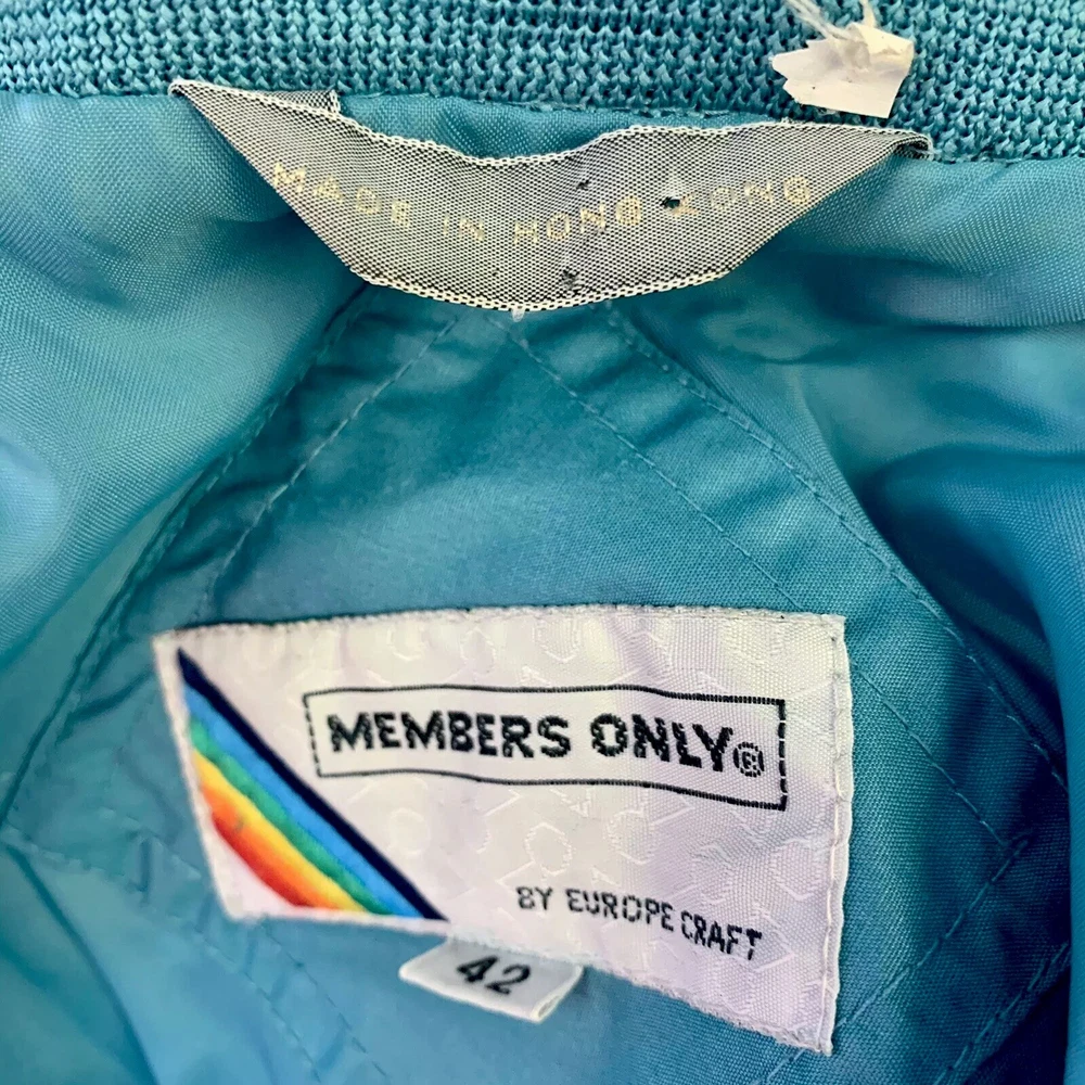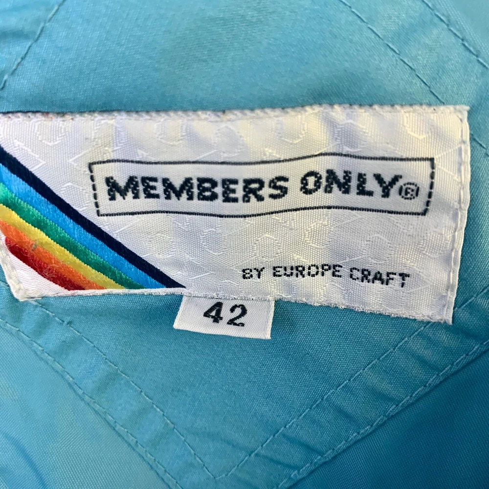 Members Only Europe Craft Cafe Racer Bomber Jacket Mens Sz 42 Vintage 80’s EUC. Estate sale find. Great vintage zip up jacket. Fully lined and in excellent condition. Made in Hong Kong. Laying flat pit to pit is 23” and neck to hem is 26”. Shoulder seam to cuff is 25”. Shipped with USPS Priority Mail. Smoke free home.