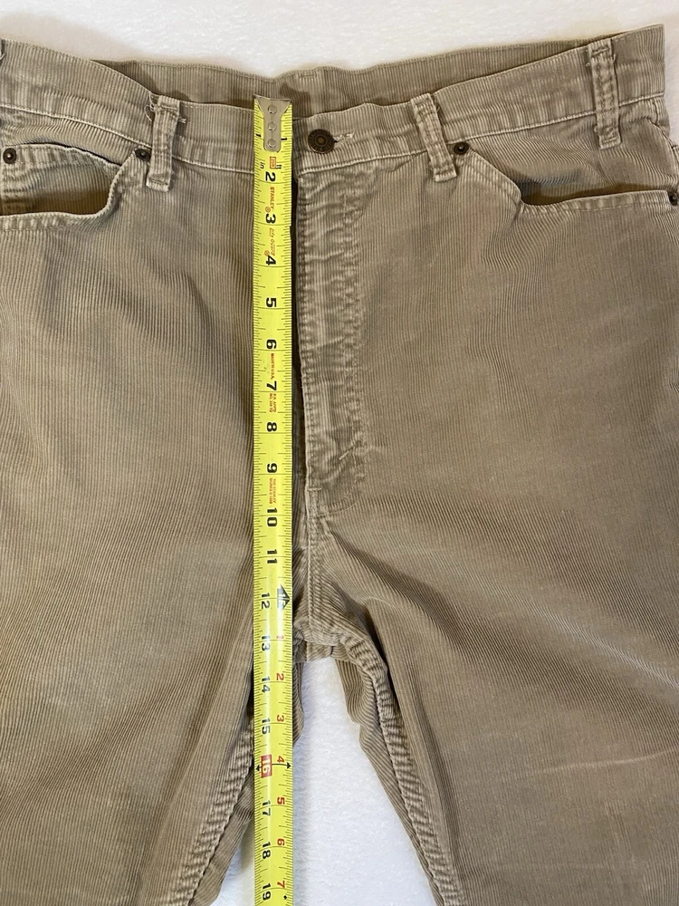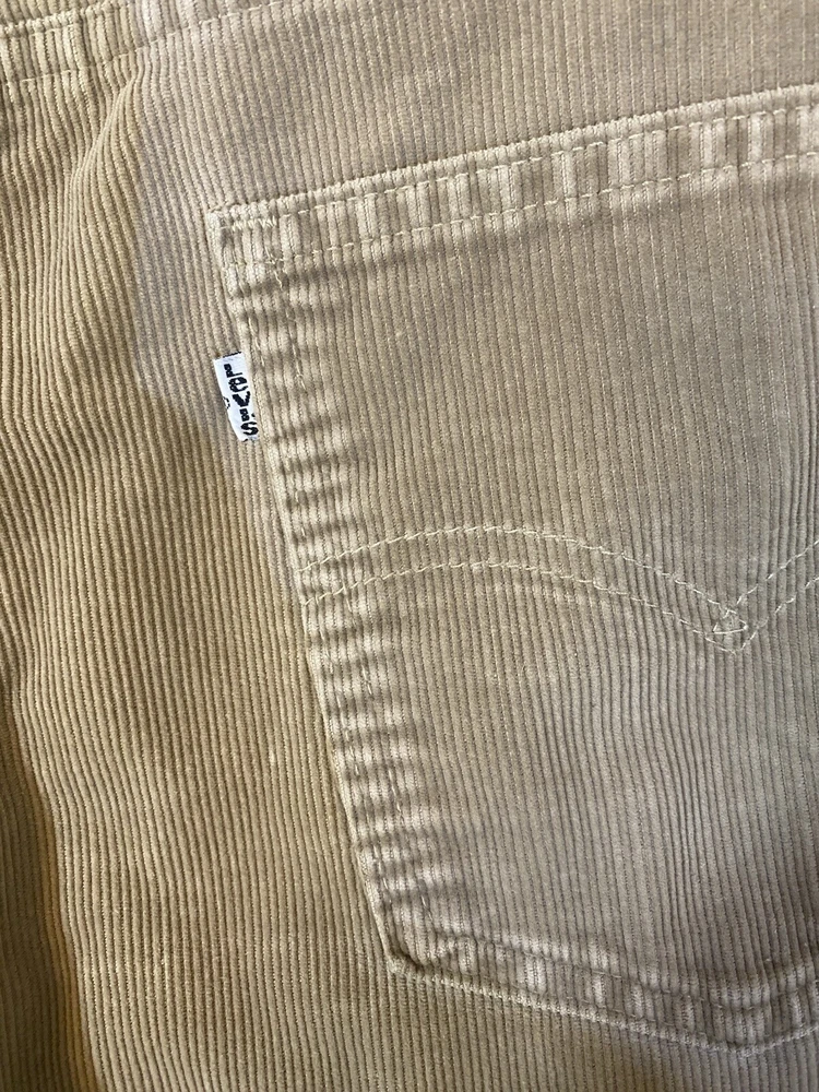 Vintage Levi corduroys. Made in USA, production year 1989. In good preowned condition! Some normal wear should be expected on vintage items. In a tan brown color . Perfect for fall and winter.
