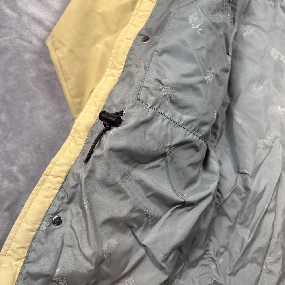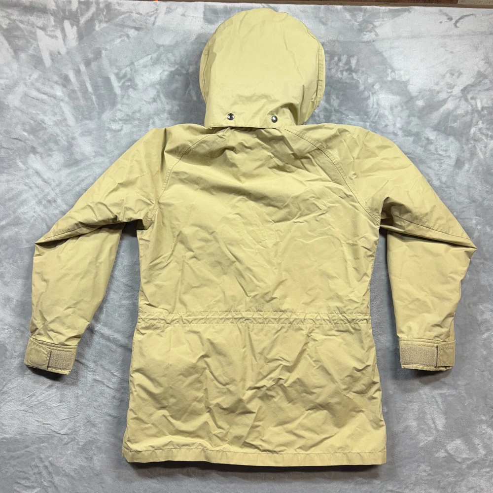 The Vintage 80s North Face Gore-Tex Full Zip Windbreaker Jacket in Medium size is a classic piece of men's outerwear. Made of durable nylon material in a stylish brown color, this jacket features a full zip closure and carries the iconic The North Face brand. With a retro 80s theme, this windbreaker exudes a timeless style that is perfect for outdoor adventures or casual wear. Perfect for those who appreciate vintage fashion and quality outdoor gear.