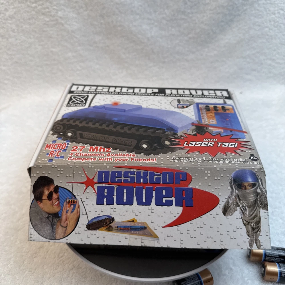 Experience the thrill of driving a Plantraco RC Desktop Rover RC Tank, perfect for collectors and hobbyists alike. This vintage toy from the 80s is a replica of a tank, with a translucent futuristic blue color and battery operated. It has been tested and is guaranteed to work, making it a great addition to your collection. Please note the antenna is broken and will need replacing or simply as cool display! The tank is designed for remote control, with a 27 MHz laser tag that allows for easy and efficient control. It is suitable for ages 8 and up, as well as collectors in their 70s. This toy is perfect for those who love military vehicles and enjoy classic electronics and collecting nostalgic items. Add this Plantraco Rover to your collection today!