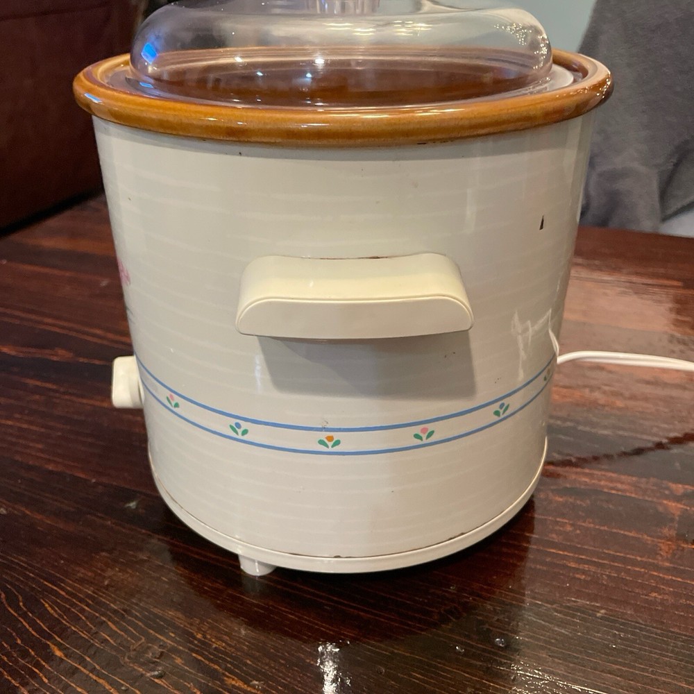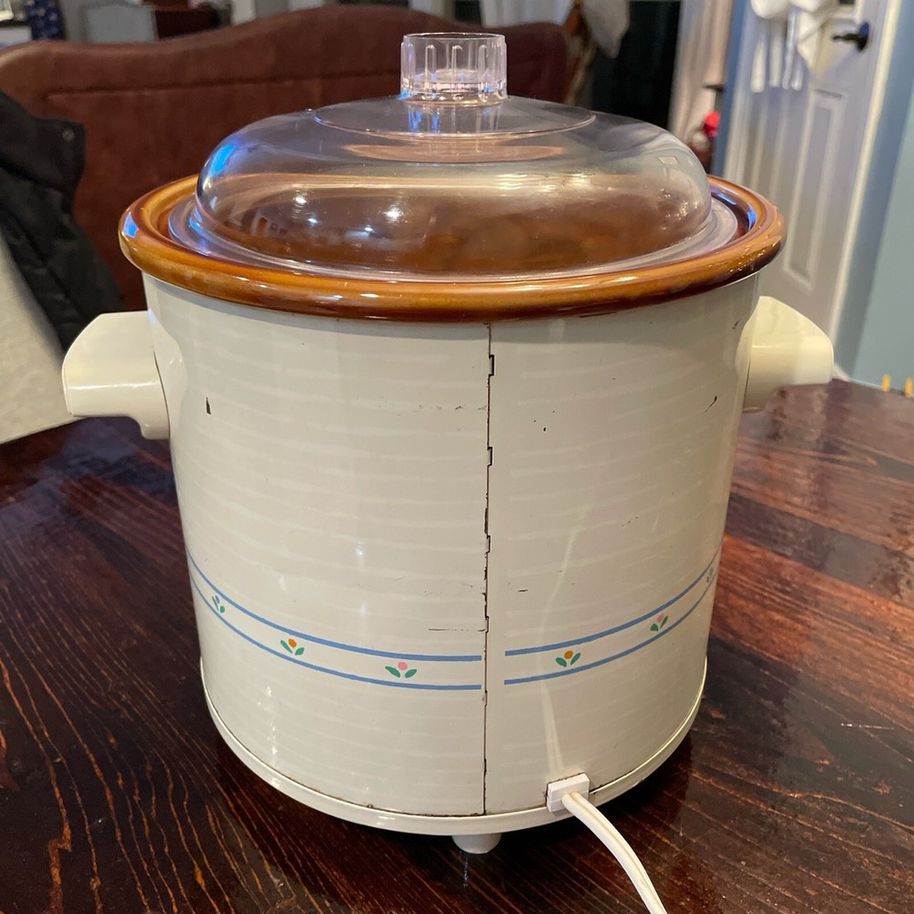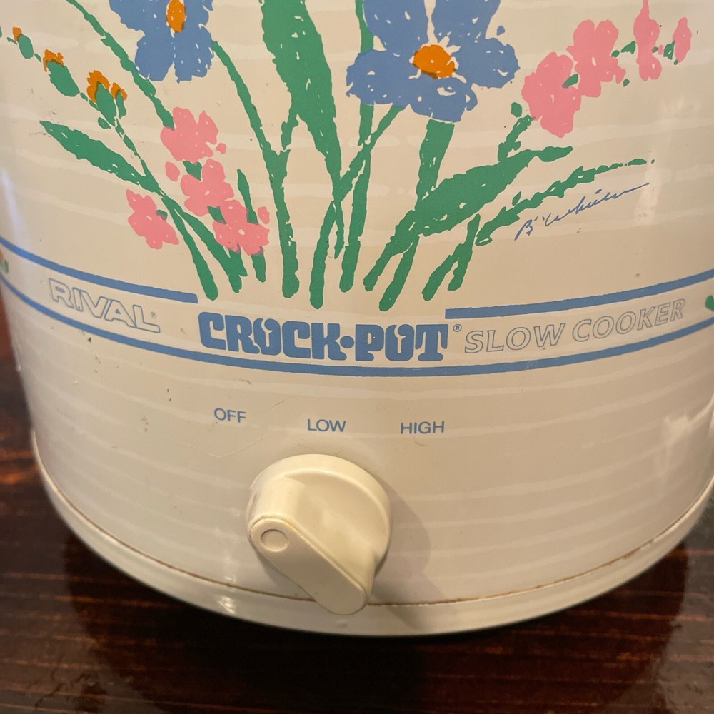 Vintage 80s Rival Crock Pot Stoneware Slow Cooker Model 3100P 3.5 Qt Flowers Lid