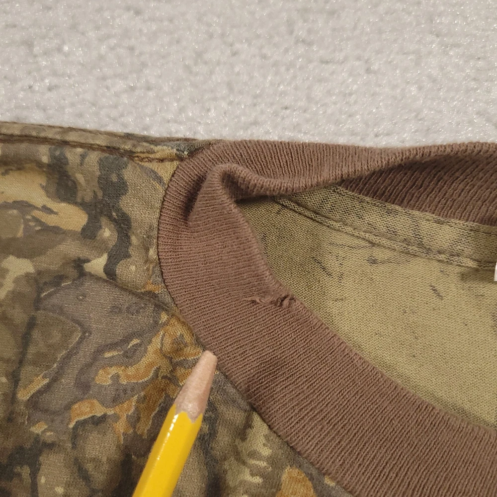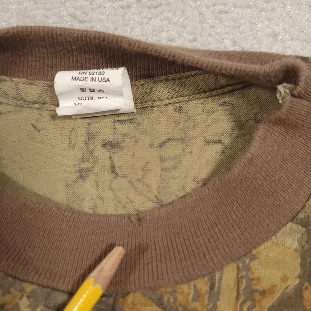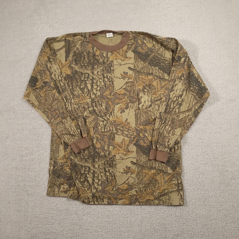 Vintage 80s SNIPER T Shirt Adult XL Brown Tree Camo Long Sleeve Crew Neck Please see above photos for all measurements Snags/holes on neckline as seen in pictures