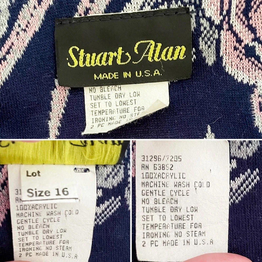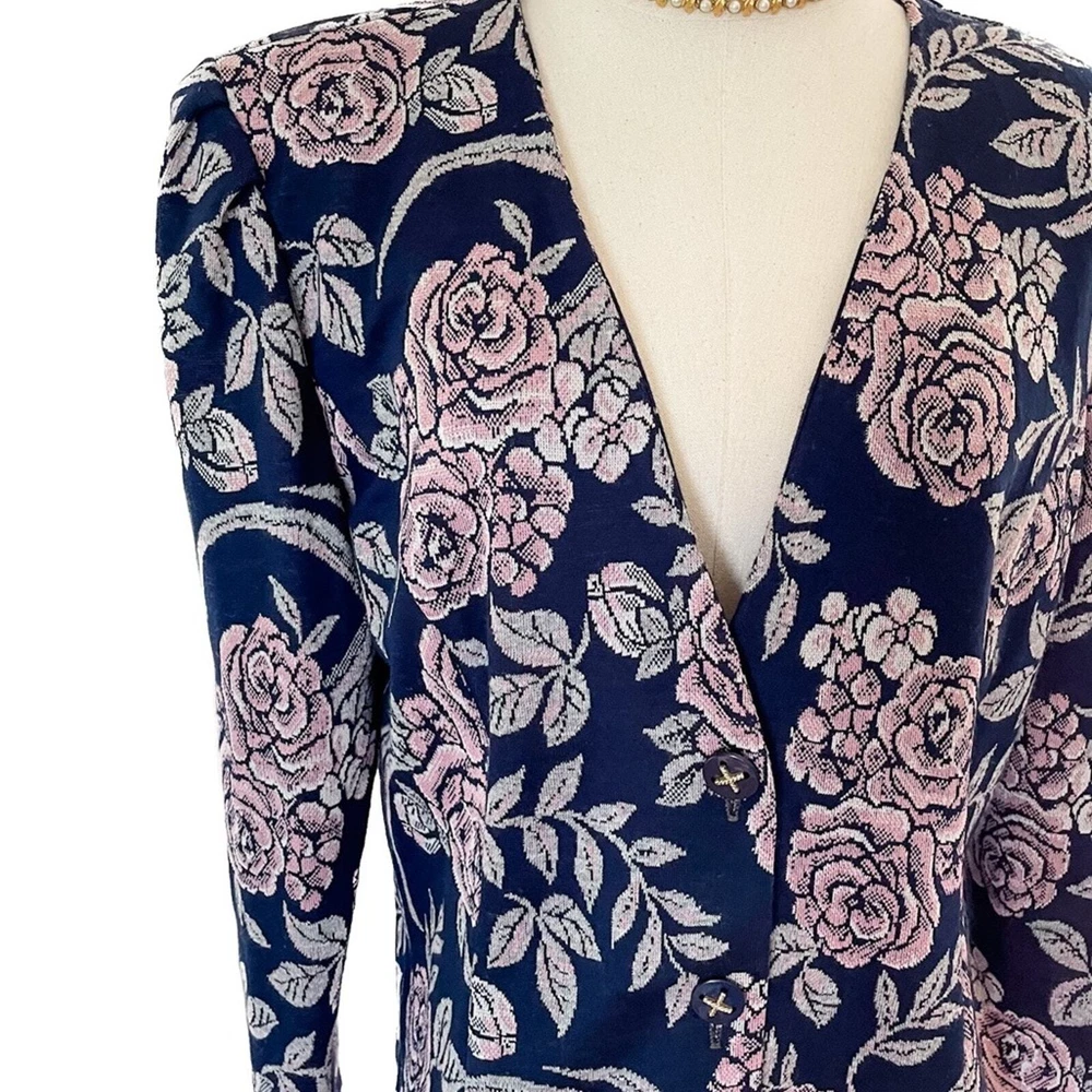 So sweet vintage 80s Stuart Alan floral lightweight knit tapestry jacket! Padded shoulders. Adorable decorative buttons. Vented front hem. Completely cute! Made in the USA back in its day Measures flat Shoulder ~18” Chest 21 Sleeve 22 Length 23.5 •Size: 16/XL •Condition: Excellent vintage – this was once part of a set but is flying solo now. Still super cute on its own! •Color: blue pink gray Bundle for combined shipping! Pictures/video are part of the description. Measurements are approximate and for guidance. Color may vary by screen. Sizes vary between designers. ALL preowned items can be expected to show normal signs of wear. Smoke free, DOG FRIENDLY home. Orders will be shipped in clean recycled packaging whenever possible. 10% of net sales go directly to charity at my local food bank. Tags: vintage floral cottagecore grannycore cottage style grandmillennial coquette plus size 80s spring summer fall transitional