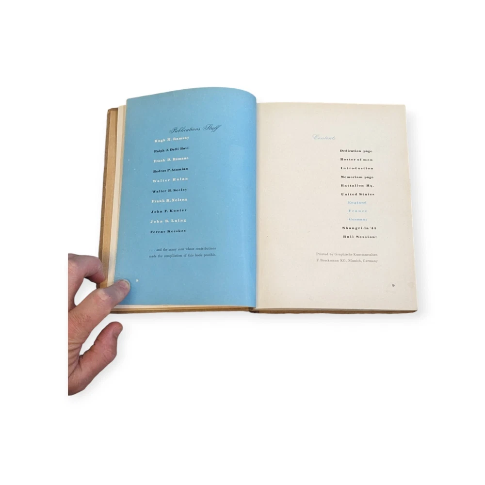 This vintage hardcover book is a must-have for any collector of World War II militaria. Filled with detailed information about the 850 Engineer Aviation Battalion, this book provides a fascinating glimpse into the experiences of American pilots and engineers during the war. With its original cover and pages, this book is a true piece of history that will make a valuable addition to any collection. The book was manufactured in the United States and is an original period item that was not reproduced. It covers the theme of militaria and provides a unique perspective on the experiences of American pilots and engineers during World War II. This book is categorized under Books, United States, Original Period Items, WW II (1939-45), Militaria, and Collectibles. Don't miss your chance to own this valuable piece of history. This is in very good condition for it's age. Both covers are intact, There's some writing in the book, however we believe that adds to the value. It also includes a personal photo at the beginning in addition to the book itself. There are some dings on the corners/small tears. All the pages are there, including a fold out map. Nice piece of history.