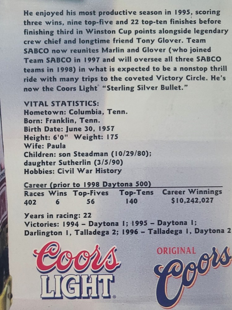 Capture a piece of racing history with this 8x10 photo featuring a Coors Race Car and information on the talented driver who took the wheel. Ideal for fans of the high-octane world of NASCAR, this photo serves as a memorable snapshot of the sport's thrilling atmosphere and the skilled athletes who make it happen. Whether you're adding to your collection of racing memorabilia or gifting a fellow enthusiast, this photo is a must-have for anyone passionate about auto racing. Its vibrant colors and detailed composition bring the excitement of the race track right into your home or office space.