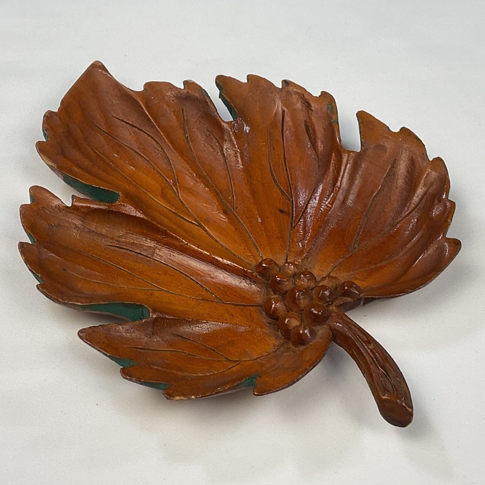 Vintage Hand Carved Wooden Grape Leaf Trinket Dish Made in Yugoslavia by Jugo Export, Item B23112 9” long, 6.5” wide Very good vintage condition - please see photos for additional details