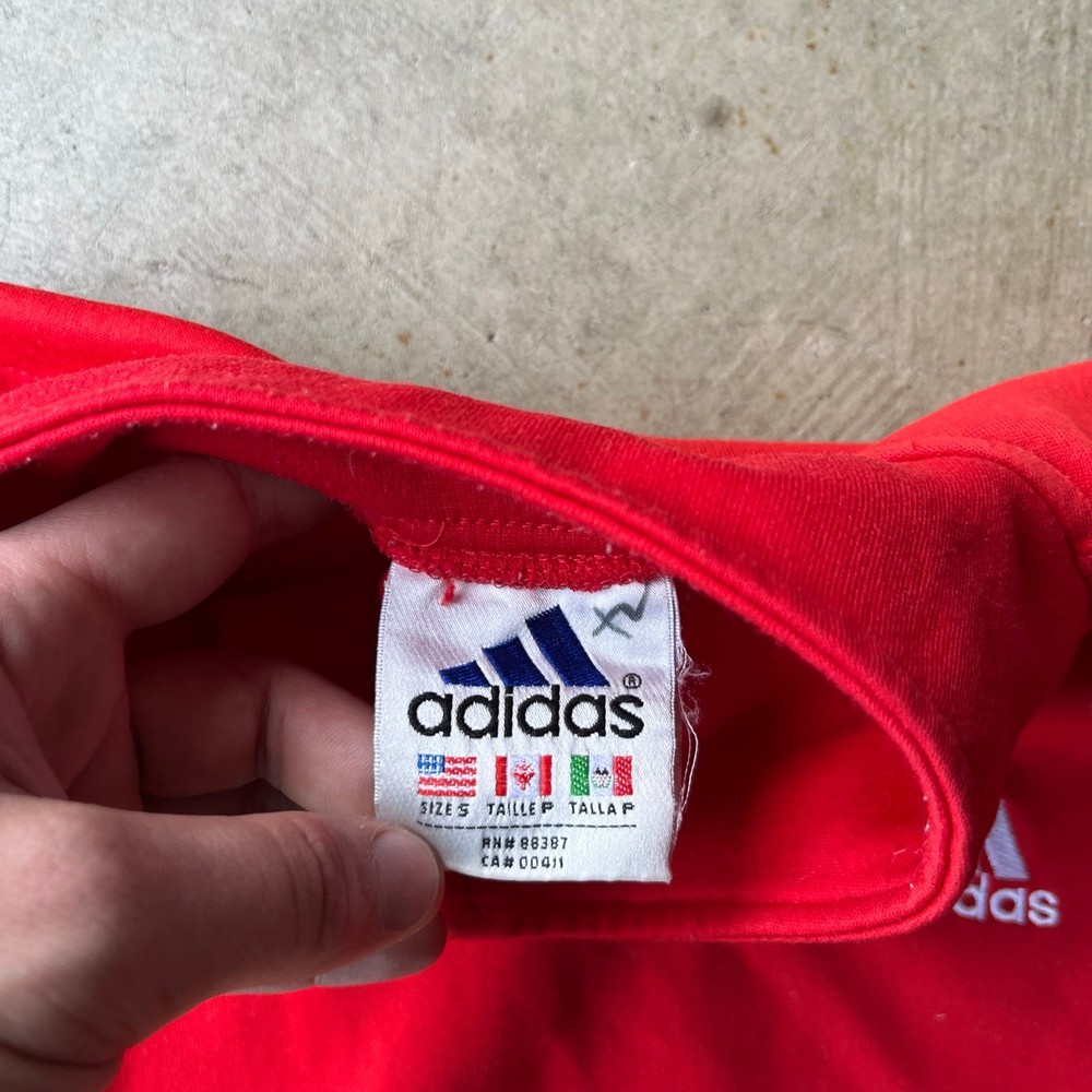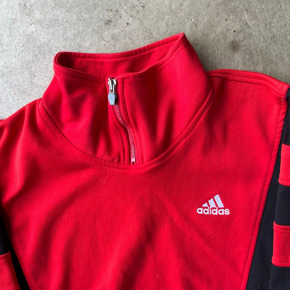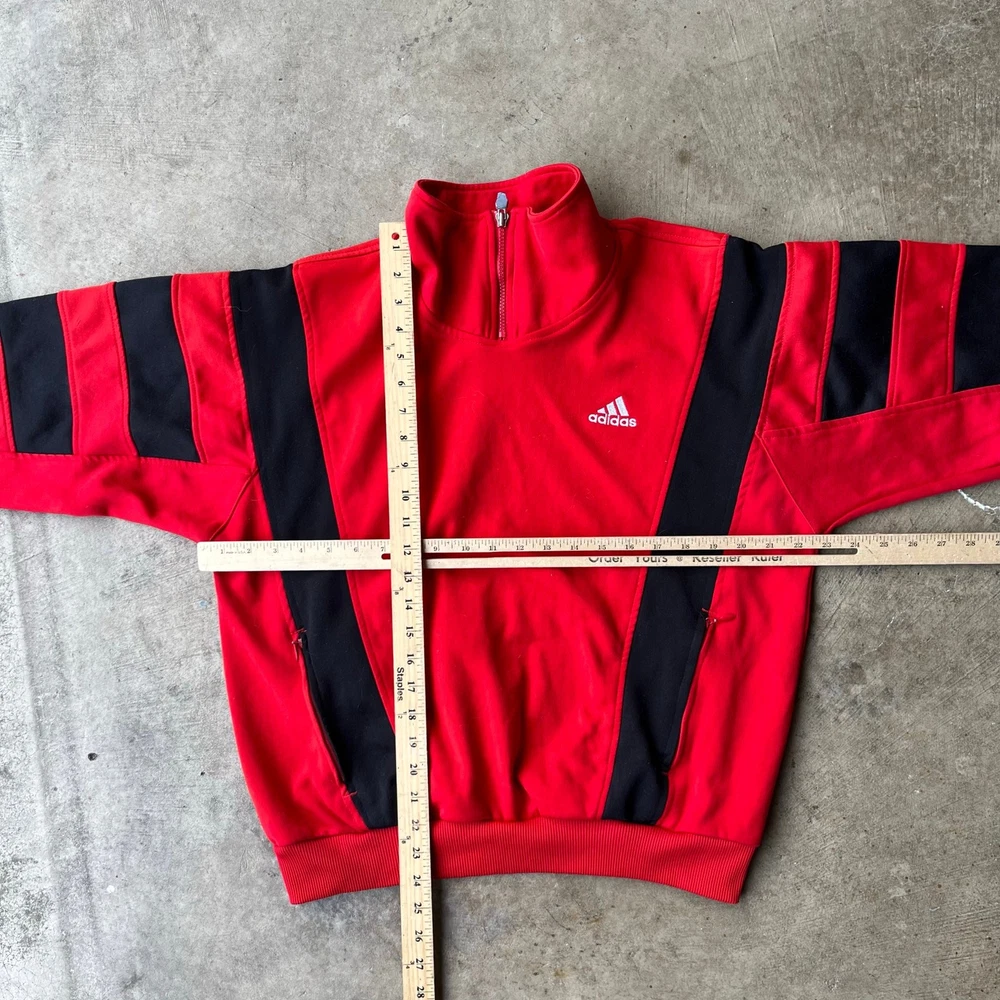 VINTAGE 90S ADIDAS SWEATSHIRT 1/4 ZIP CREWNECK SMALL RED BLACK EUROPEAN beautiful color measurements, and tag shown in pictures item is preworn and may have defects shipping every wednesday and sunday