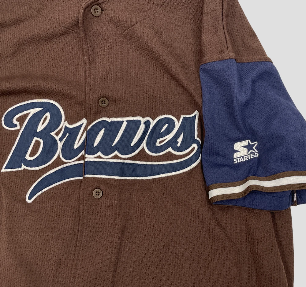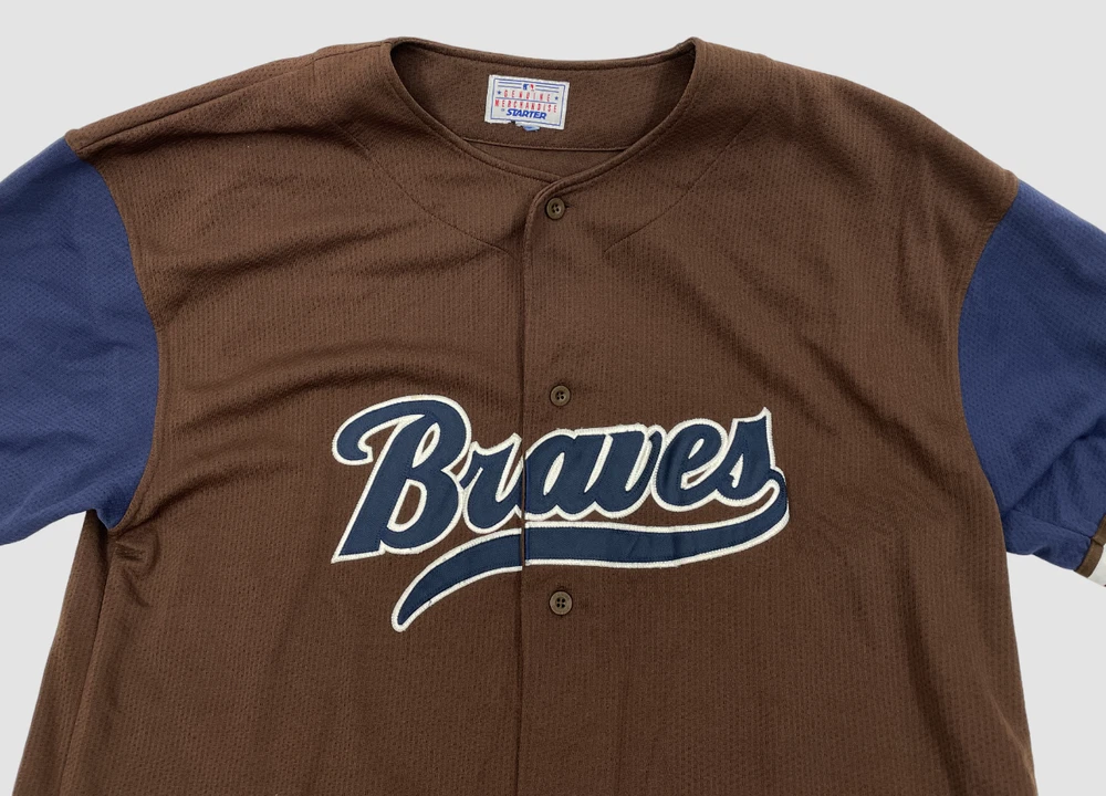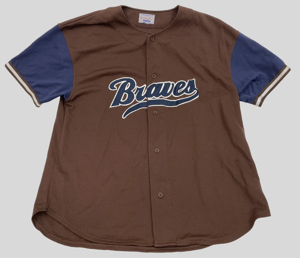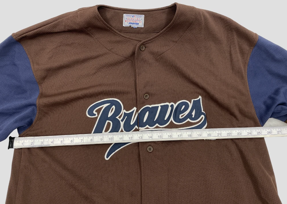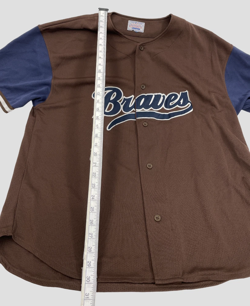 Color: Brown Size: XL Gender: Men Brand: Starter Officially Licensed: Yes Team: Atlanta Braves Sport: Baseball Product: Jersey League: Major League (MLB)