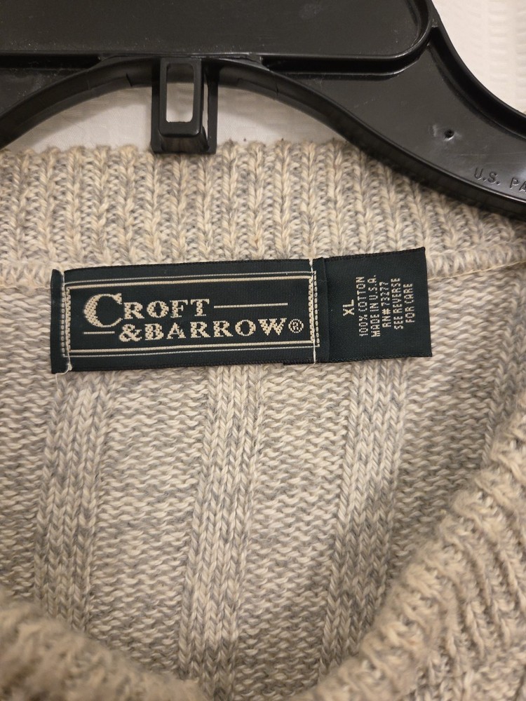 $ 20.6Vintage J Crew Ivory Linen Fisherman Sweater Roll Neck Sz L Oarsmen Style