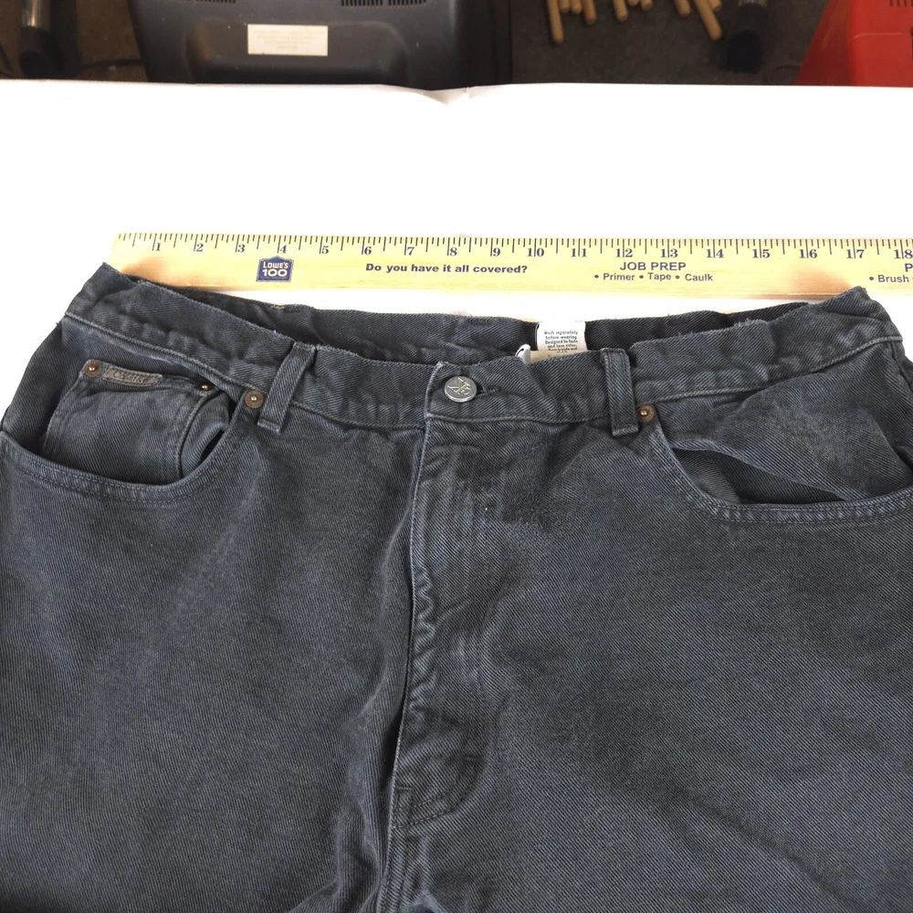 Has fading to color due to age. Tagged size 38x30 measures closer to size 34x29 see photos for measurements to determine proper fit before buying. Thanks,.