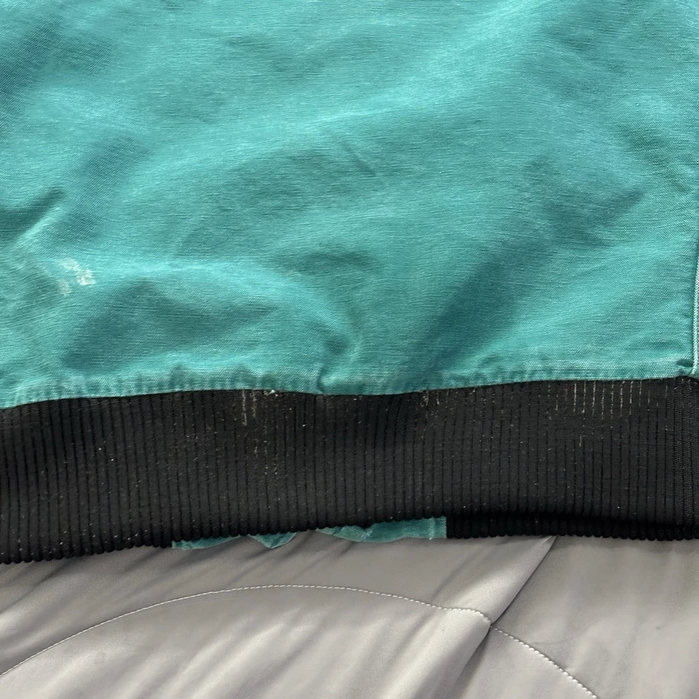 Tag is faded so I can't read the size seems to be a small or medium . Please see pictures for measurements and condition. Please see photos Jersey It has small holes and scratches and an oil stain on the lower back.