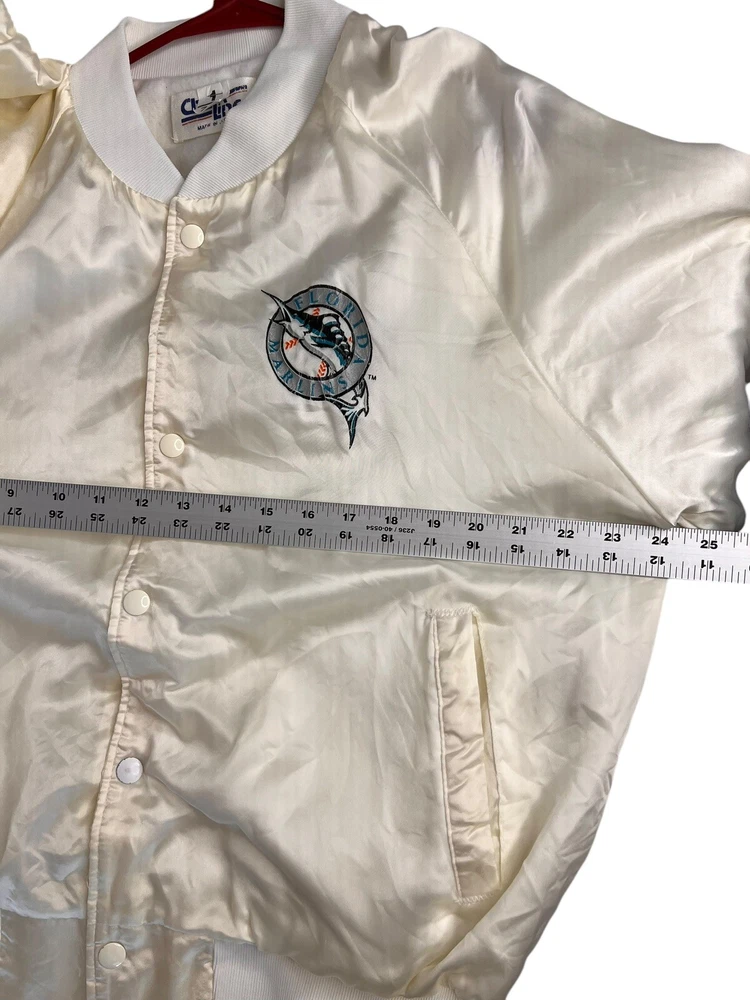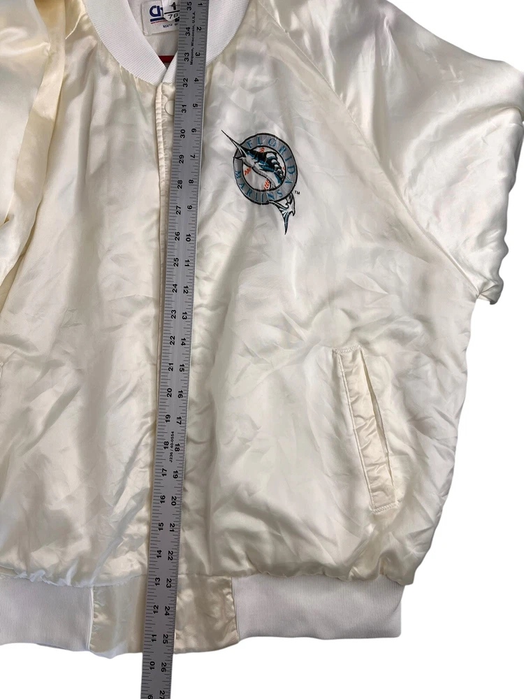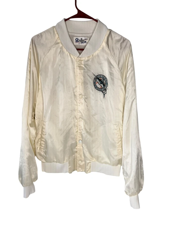 Unisex vintage Florida Marlins bomber lightweight jacket with thin fleece lining. Size Large No holes, rips or stains. Some yellowing from age. See photos for accurate measurements