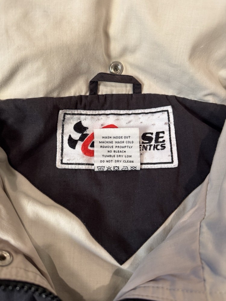 This vintage racing jacket is a total gem—super stylish with classic 90s vibes! The black embroidered design looks sharp, and the stain mentioned is barely noticeable. Fits true to size, super comfy, and the quality is awesome for its age. Shipping was lightning-fast too—highly recommend for any motorsport fan or collector!