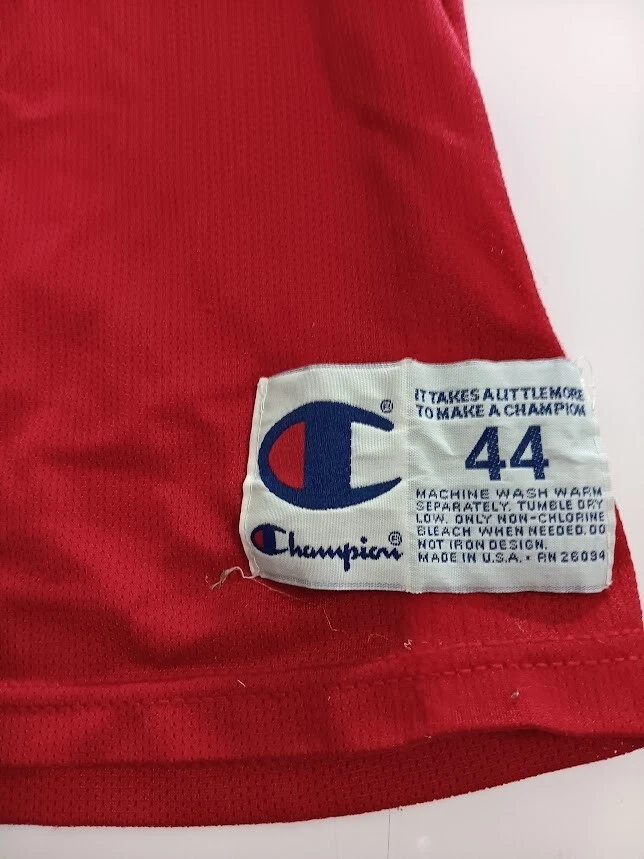 Brand:ChampionPlayer:Scottie PippenTeam:Chicago BullsProduct:JerseySeller Notes:“Average Condition. Probably Worn 10 Times In The 90s. No Stains & Very Little Wear on White Areas.”Size:44Color:Red