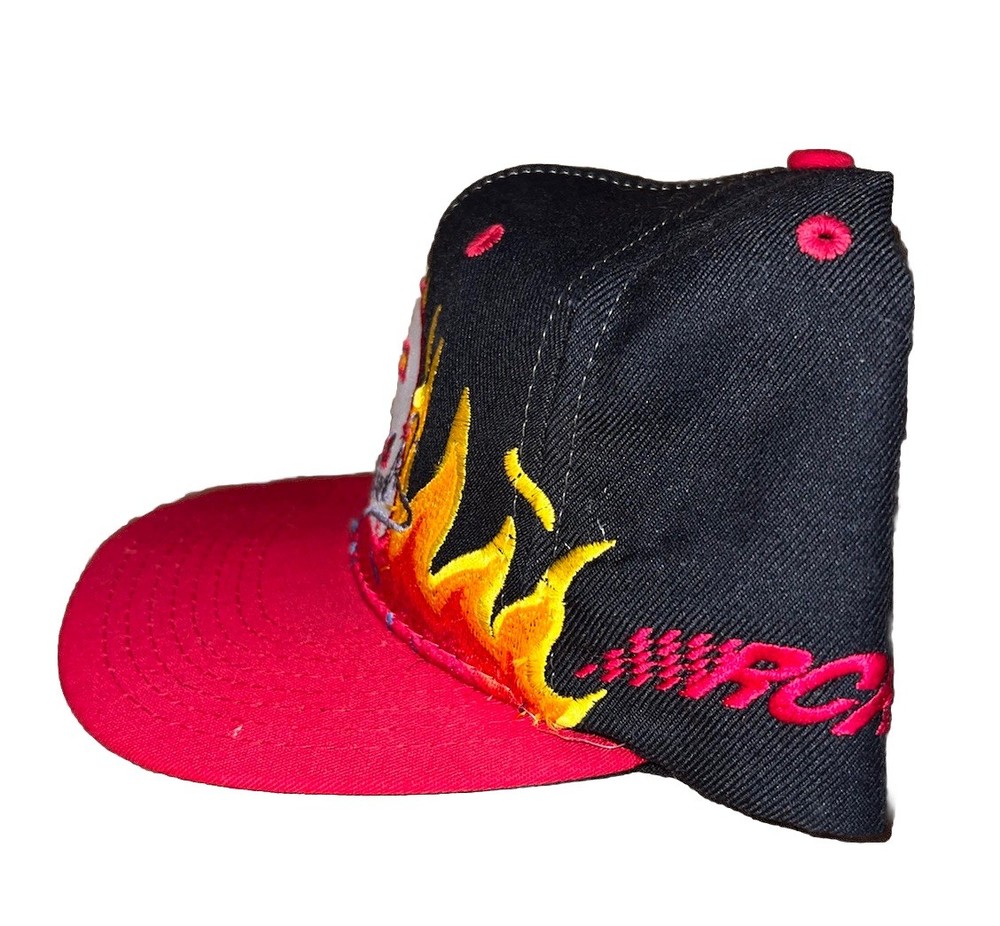 The Vintage 90s Dale Earnhardt Flame Fire Snapback Hat by Chase Authentic is a NASCAR officially licensed cap featuring the iconic Dale Earnhardt driver. This unisex adult hat comes in a multi-color design with a unique flame fire graphic, making it a must-have for fans of auto racing and NASCAR. The modified item offers a one-size-fits-all convenience for any NASCAR enthusiast looking to show their support for Dale Earnhardt in style.