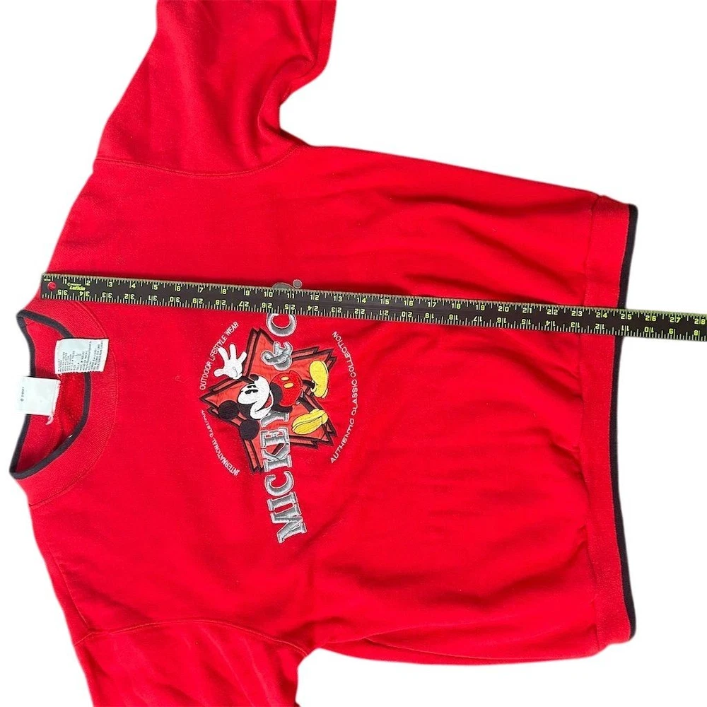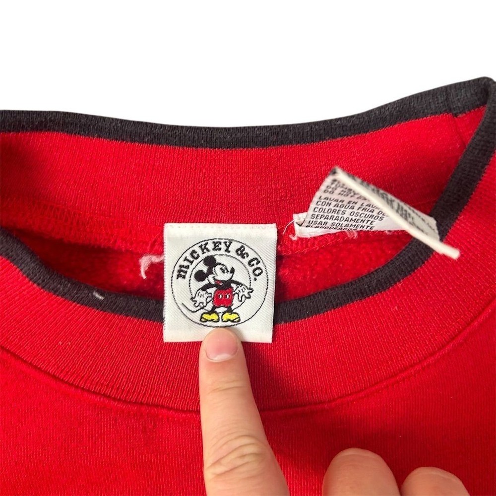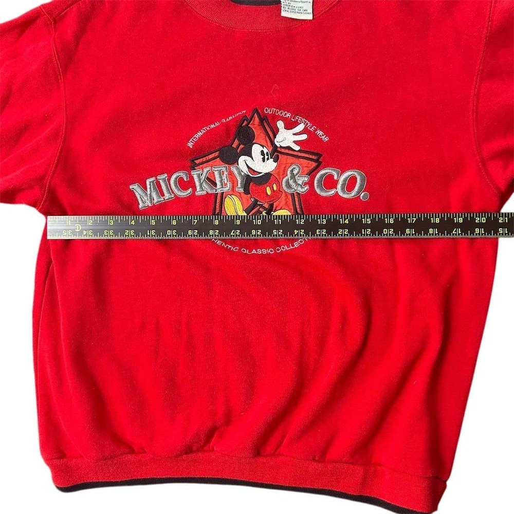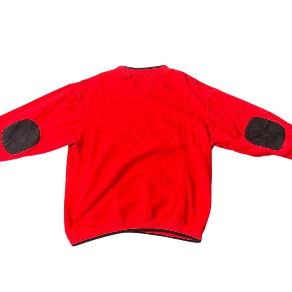 This Mickey & Co. pullover sweater is designed for teens and features a vibrant red color with a graphic print of Mickey Mouse. Made from a blend of polyester and cotton, it offers a comfortable knit fabric with a crew neck and long sleeves. The sweater includes embroidered accents and elbow patches, adding a touch of vintage Disney charm. Suitable for casual occasions in the fall, it is machine washable for easy care. Manufactured in Macau, this regular fit sweater is pre-owned. Brand: Mickey & Co. Size: L Style: Pullover Department: Teens Color: Red Type: Sweater Material: Polyester, Cotton Neckline: Crew Neck Fabric type: Knit Character: Mickey Mouse Features: Embroidered, Elbow Patches Theme: Disney, Vintage Pattern: Graphic Print Country/region of manufacture: Macau Vintage Sleeve length: Long Sleeve Accents: Embroidered Fit: Regular Season: Fall Occasion: Casual Garment care: Machine Washable Description is AI generated, in the case that the pictures and description say something different, believe the pics. 8k