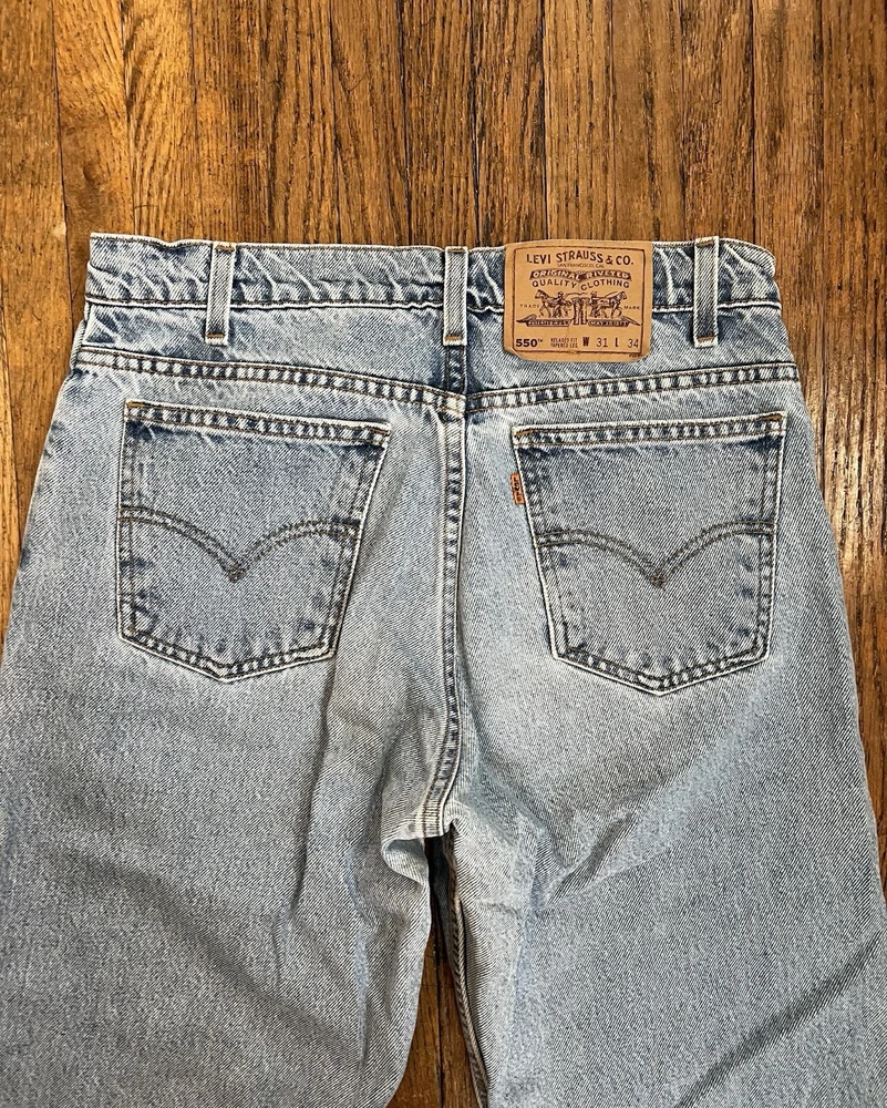vintage levi’s orange tab 550 relaxed fit tapered leg light wash 31x34 mens jeans denim small stains pictured message me with questions!