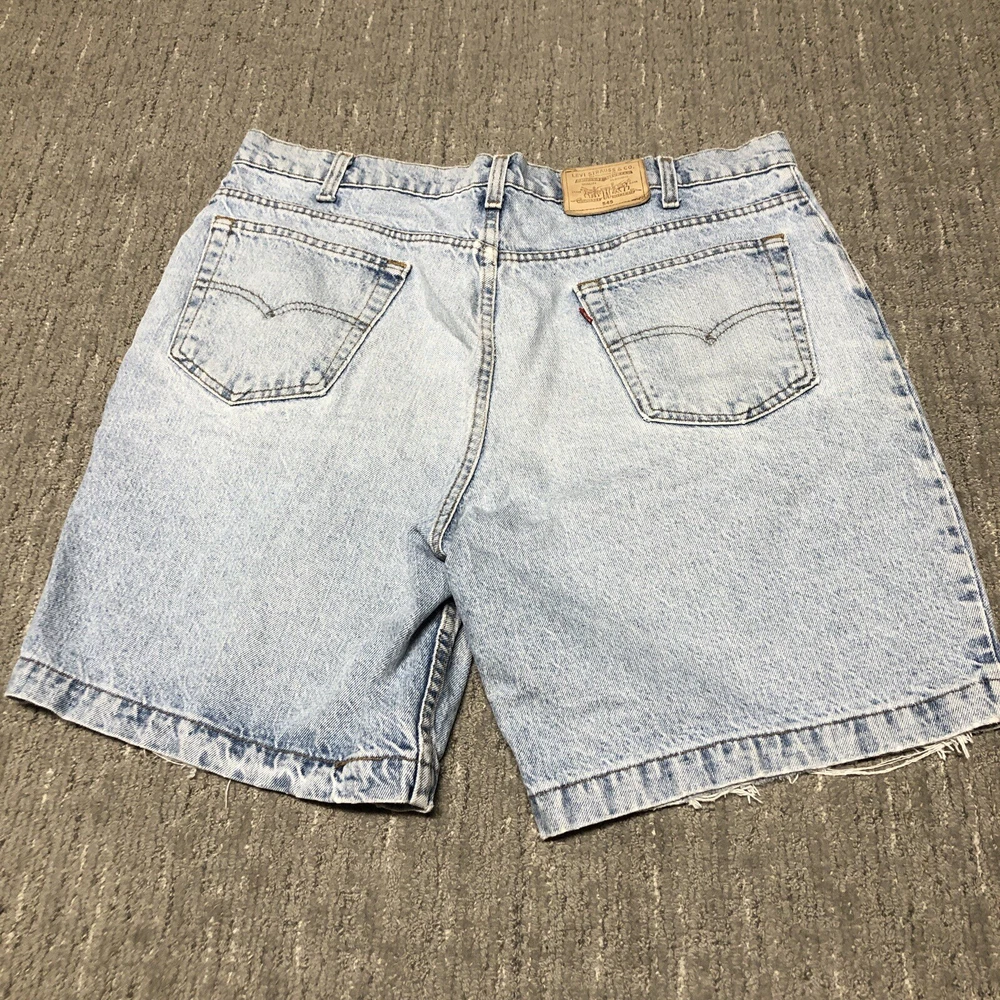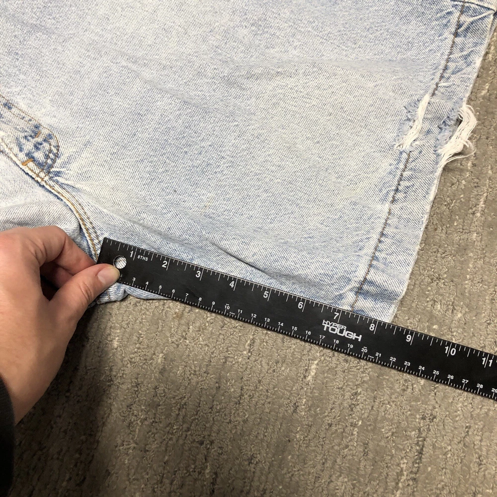 Vintage 90s Levi’s 545 Baggy Denim Shorts Men’s Size 40 Blue Faded Distressed Preowned Good condition Small stain on leg. Nice distressing at bottom and fading. Made in USA. Please see pics and ask questions before purchasing Thanks!