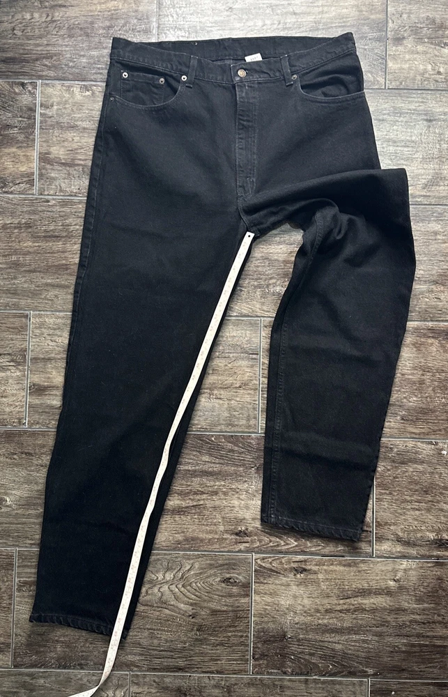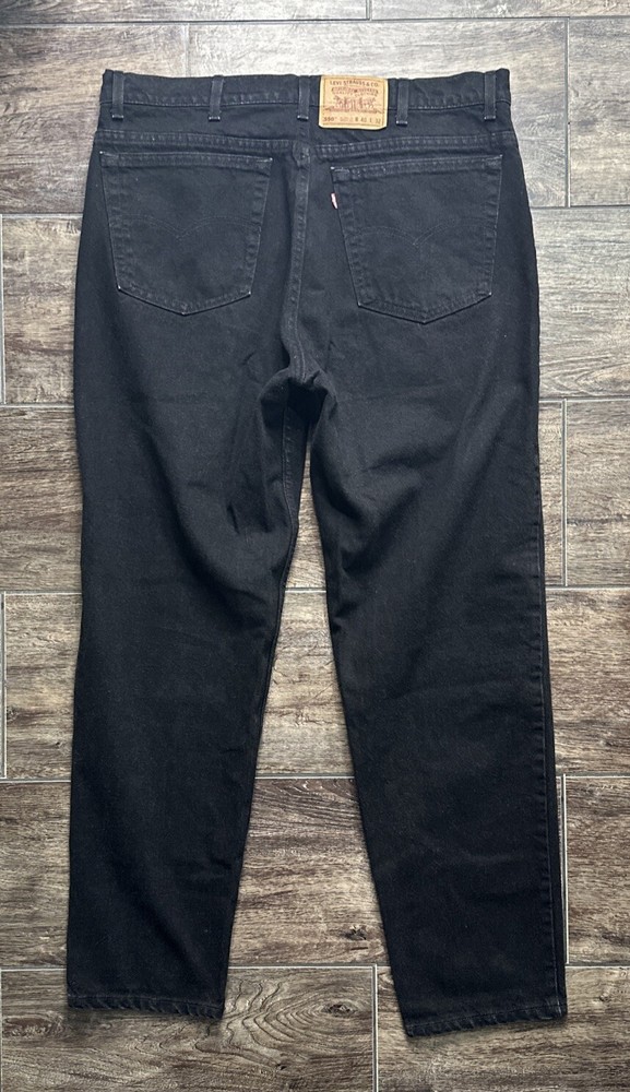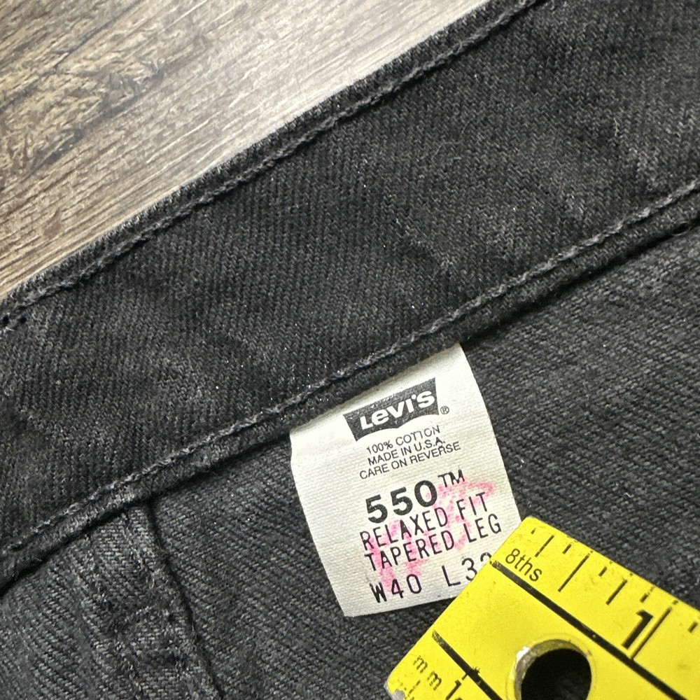Please see pictures for an accurate description. Same-day business shipping. Pet loving smoke-free shipping home. Thank you so much for your interest. If you have any questions, please feel free to ask. Vintage 90s Levi's 550 Black Denim Jeans for men, featuring a true size 38 waist and 30-inch inseam. Made in the USA from 100% cotton with a charcoal wash. These relaxed fit, high-rise jeans have a tapered leg style and a classic 5-pocket design. They boast a red Batwing care tag, red tab, and embody a classic American theme from 1996.