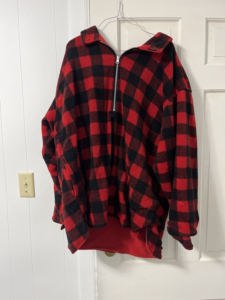 Marlboro Reversible Buffalo Plaid Fleece 1/2 Zip Pullover Jacket