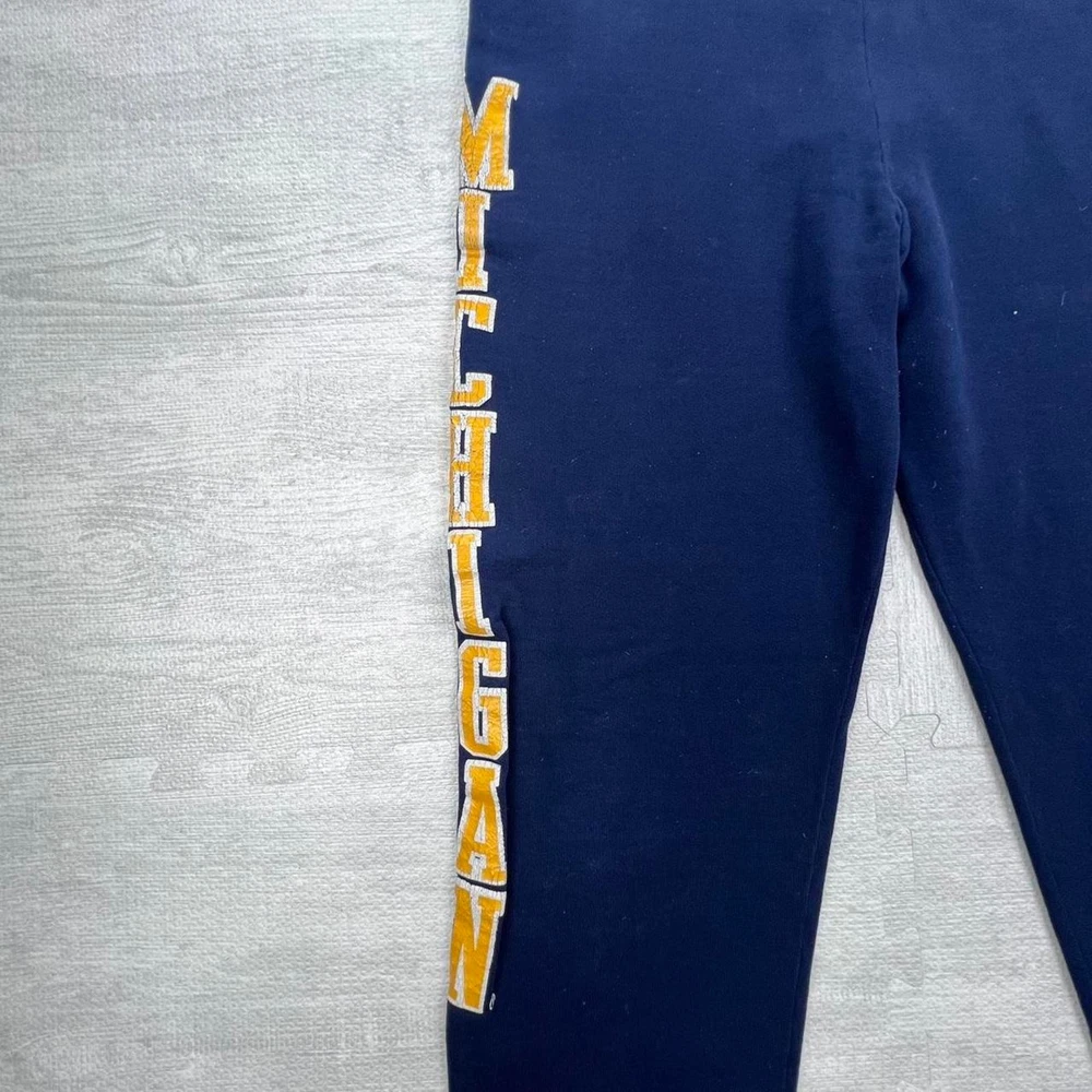 Vintage 90s University of Michigan wolverines navy yellow graphic sweatpants NCAA college sportswear streetwear retro boho Russell athletic Size: M Inseam: 27 Length: 39