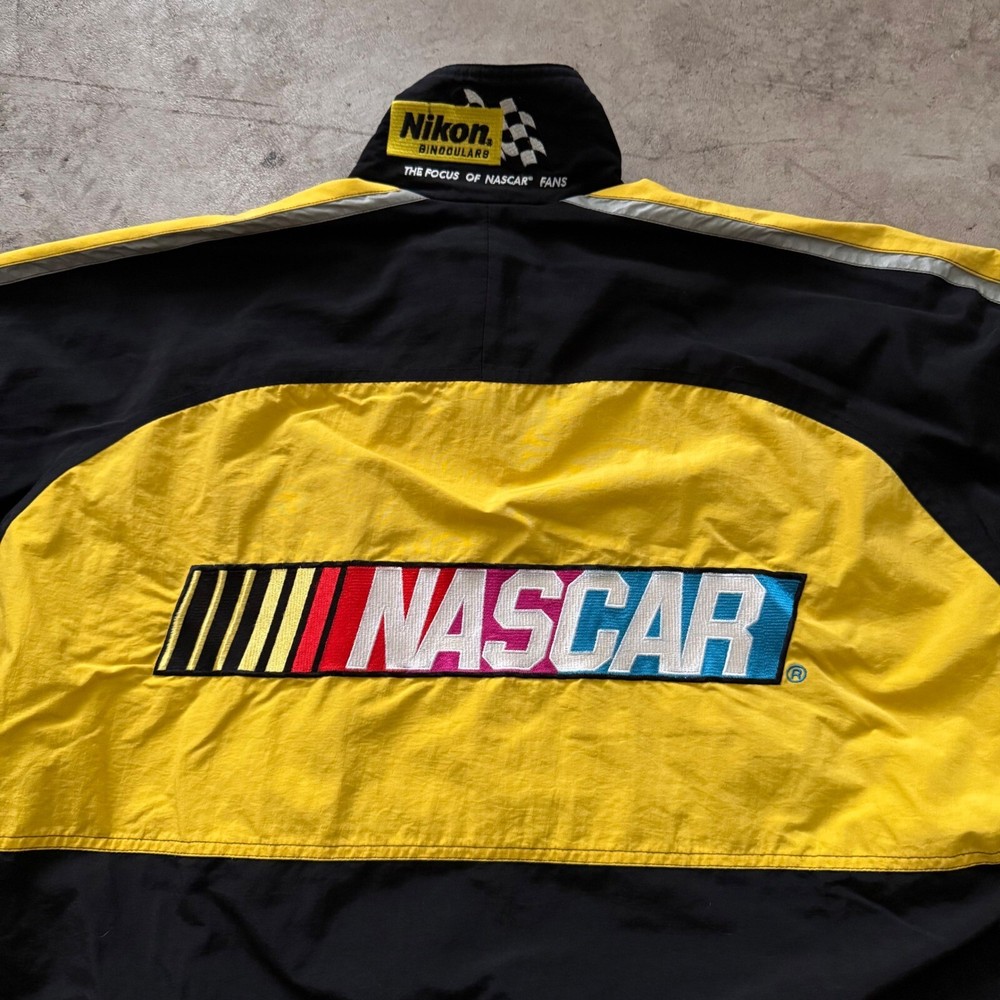 This vintage-inspired NASCAR jacket is a total throwback gem! The bold black and yellow design with reflective accents looks sharp, and the full-zip windbreaker is super lightweight yet durable. Love the classic Nikon and NASCAR logos—perfect for racing fans or anyone who loves retro sporty style. The fit is comfortable, and the microfiber material feels great. Definitely a standout piece for casual wear or showing off some 90s nostalgia!