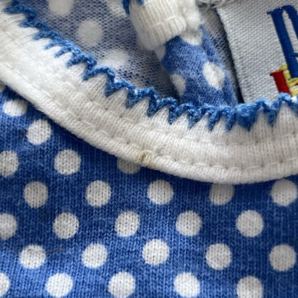 Vintage 90s PA Kids blue and white polka dot t shirt dress with embroidered tropical fish. 100% cotton. Has one tiny dot stain on the collar shown in photos. Girls size 3T with measurements below. Pit to pit: 12” Shoulder to hem: 17”