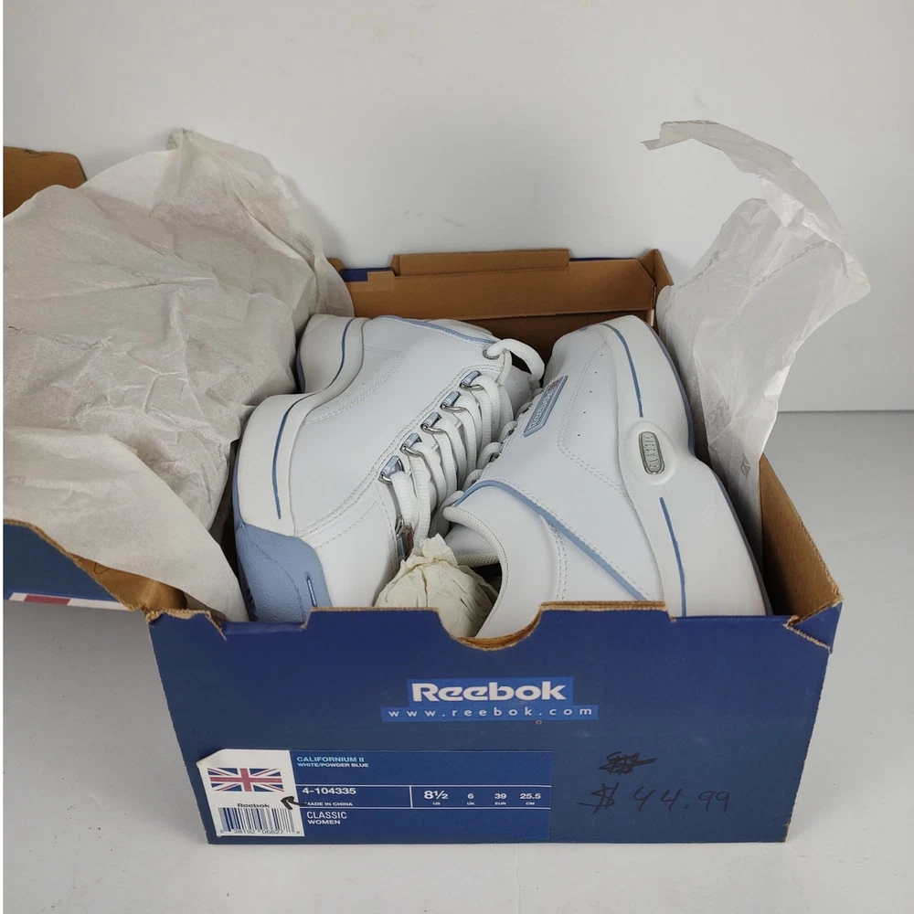 Reebok Classic Californium II 1999 - White and powder blue VTG Deadstock reebok classic sneakers, womens size 8.5 In great condition, no defects, comes in OG box *DISCLAIMER* 20+ yr old shoes may be more fragile and prone to damage, use with care Please reference photos before purchasing